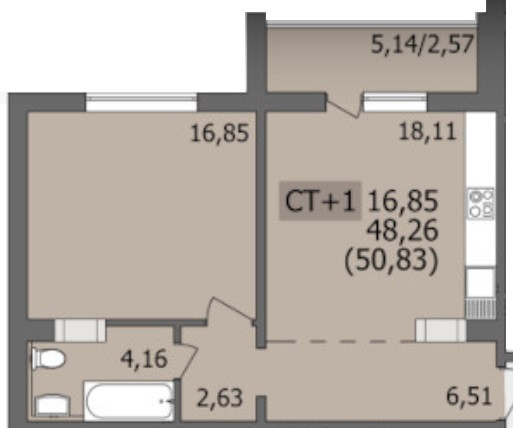 Общая площадь 50.83 м2
