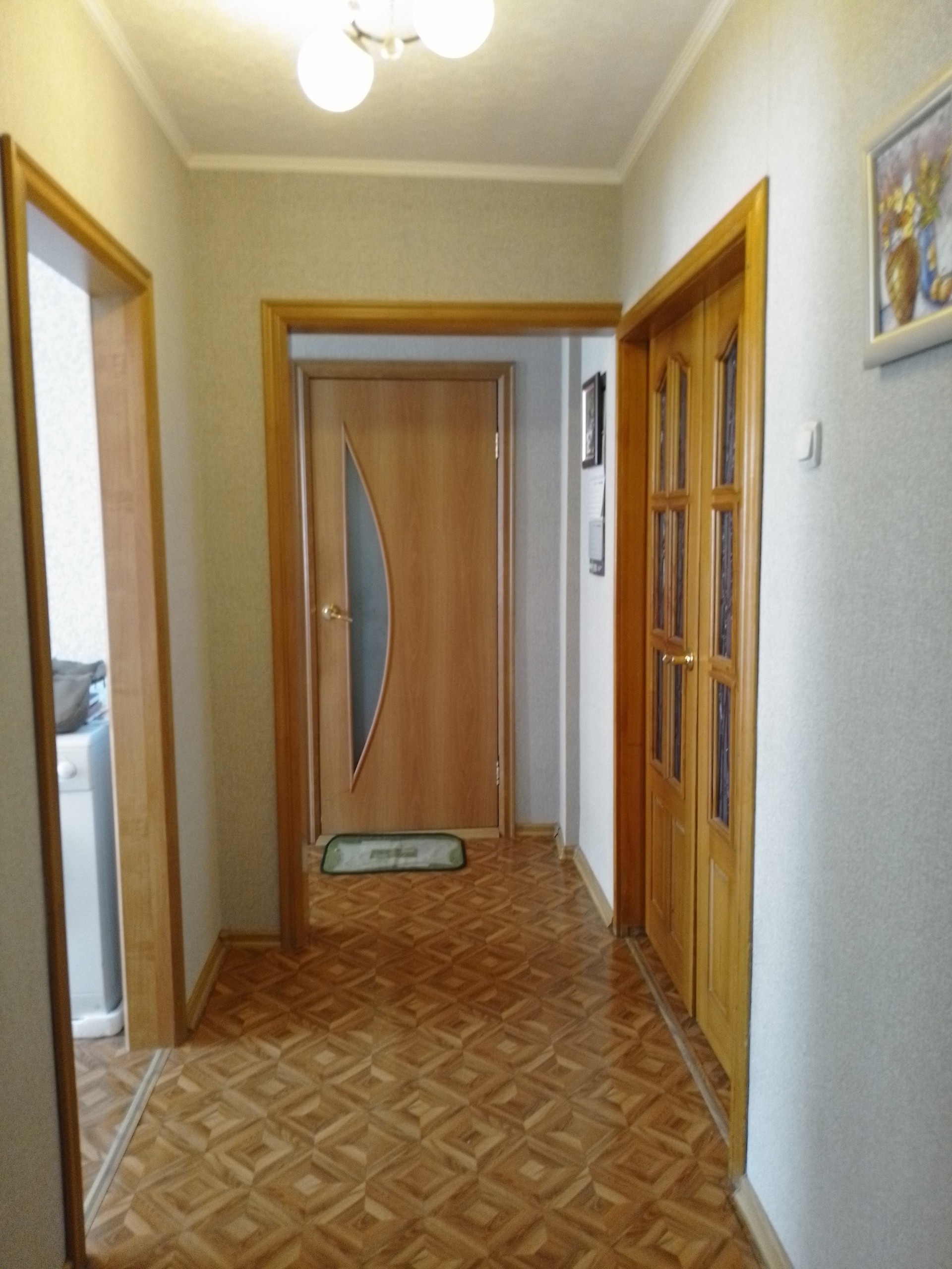 Внутри квартиры выполнен косметический ремонт, благодаря чему она выглядит аккуратно и ухоженно. Комнаты раздельные, что позволяет каждому члену семьи иметь своё личное пространство. Также имеется раздельный санузел, что является большим плюсом для большой семьи.
