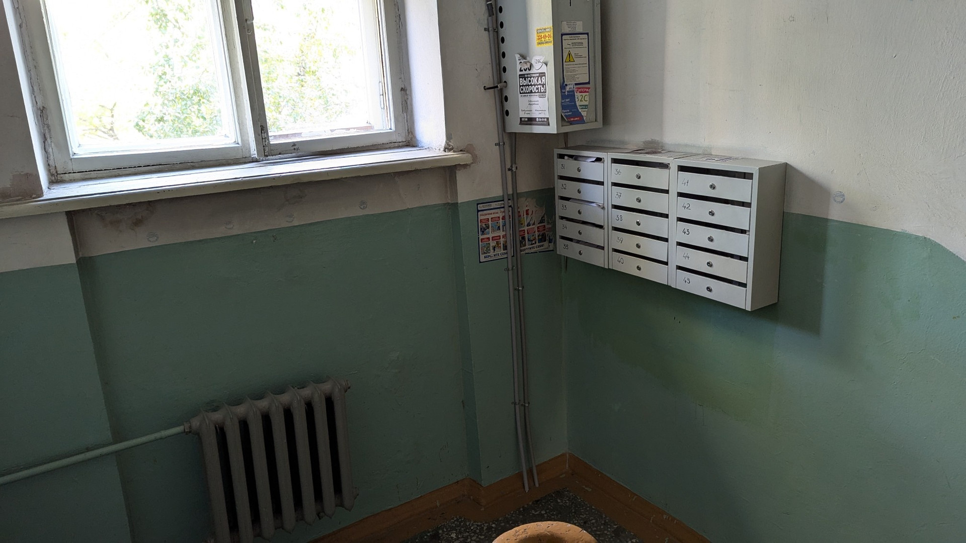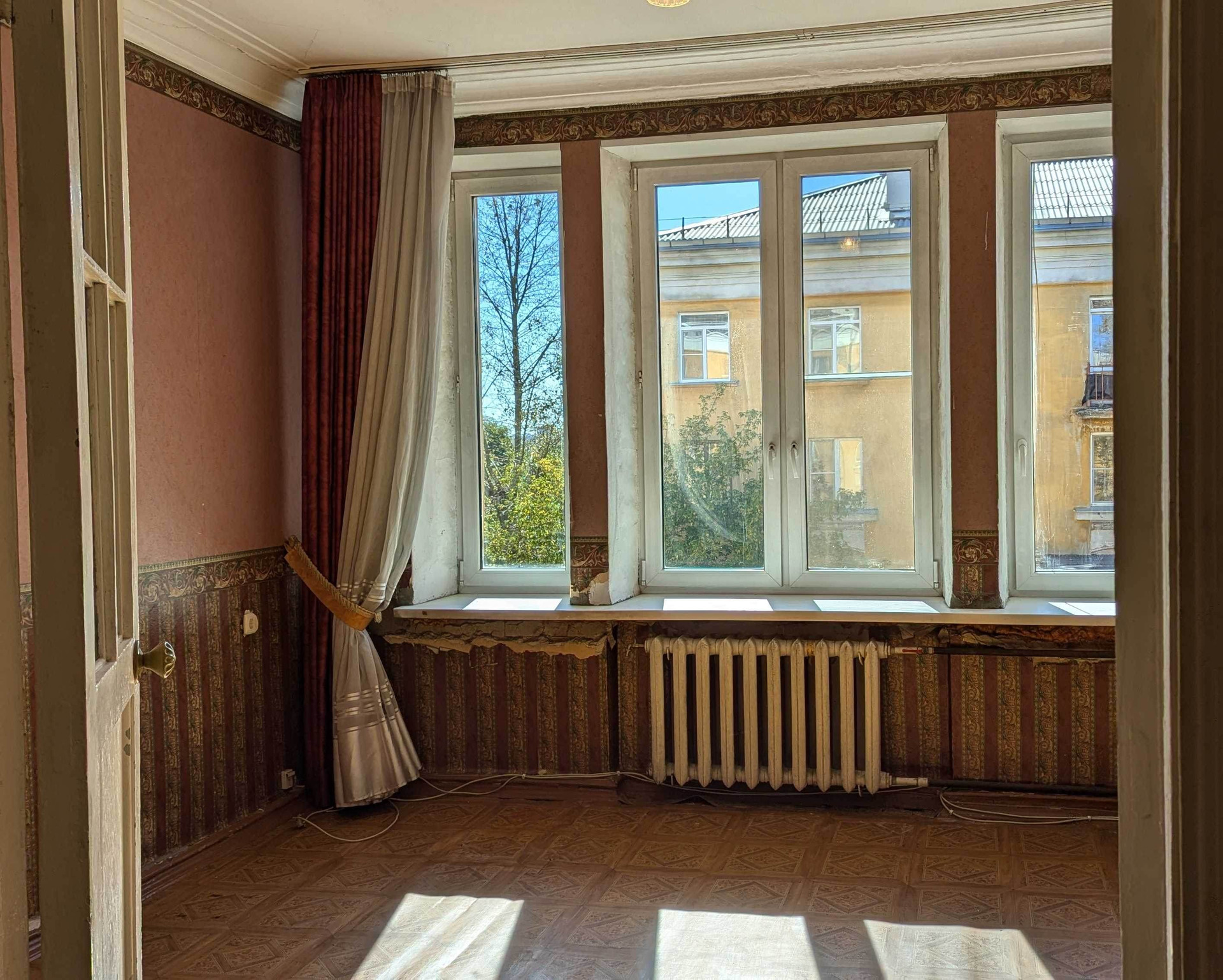 Окна во двор на солнечную сторону. Стены 60 см, квартира тёплая зимой. Чистый подъезд.