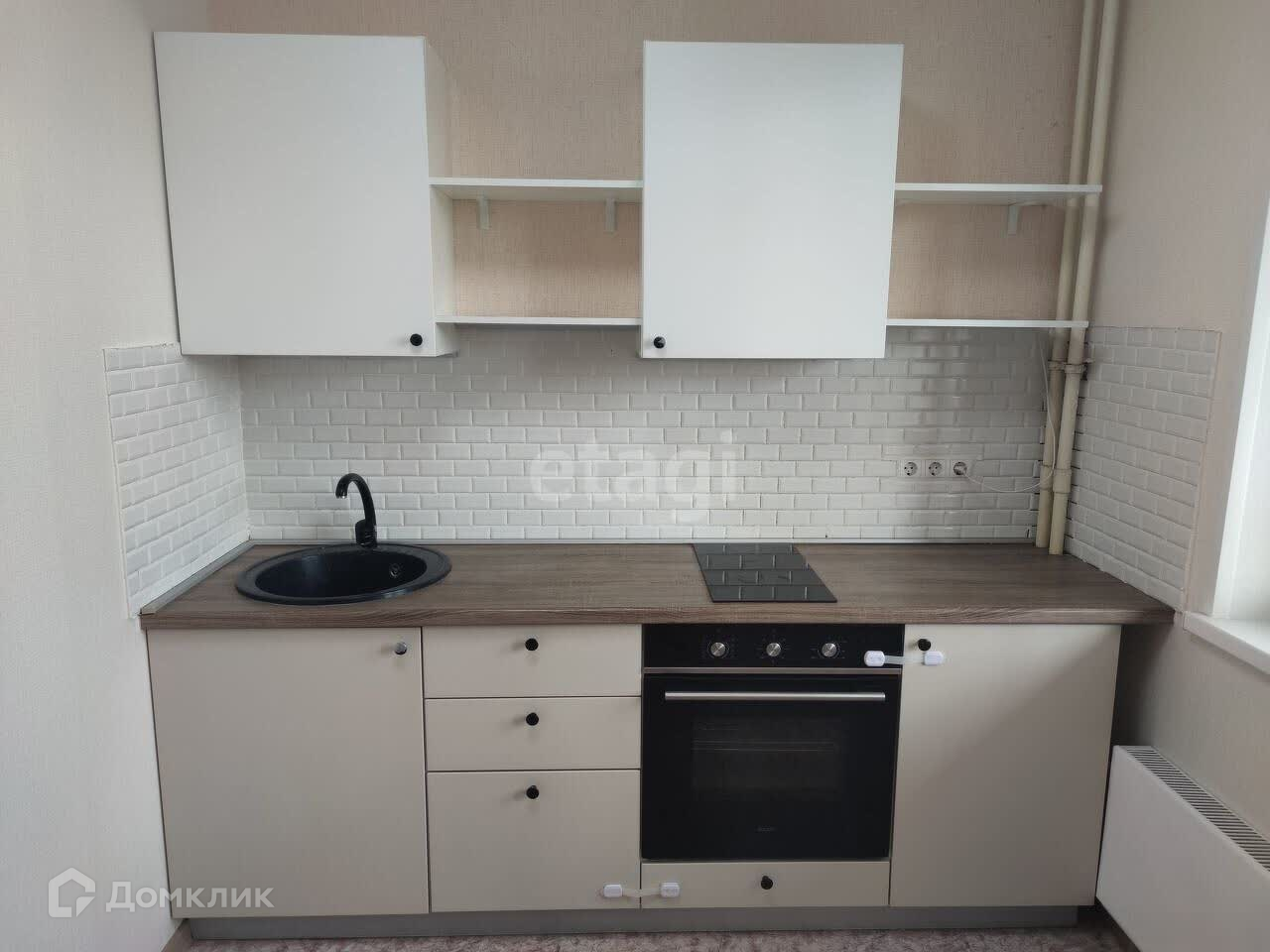 В квартире остается кухонный гарнитур, варочная панель, духовой шкаф.