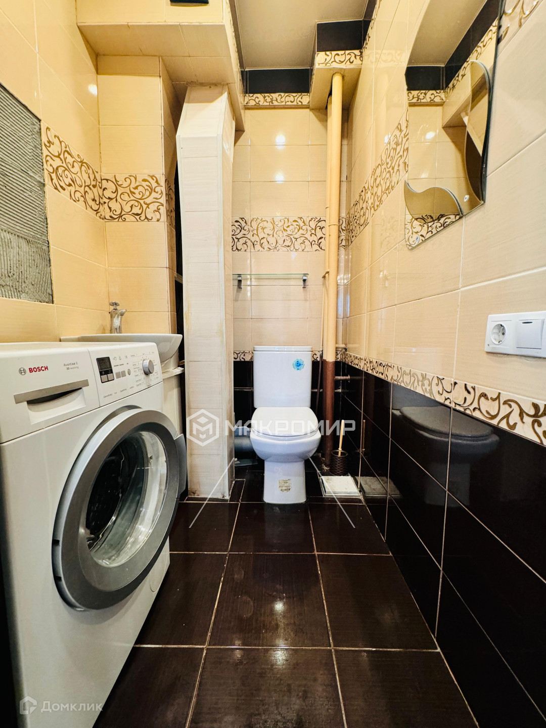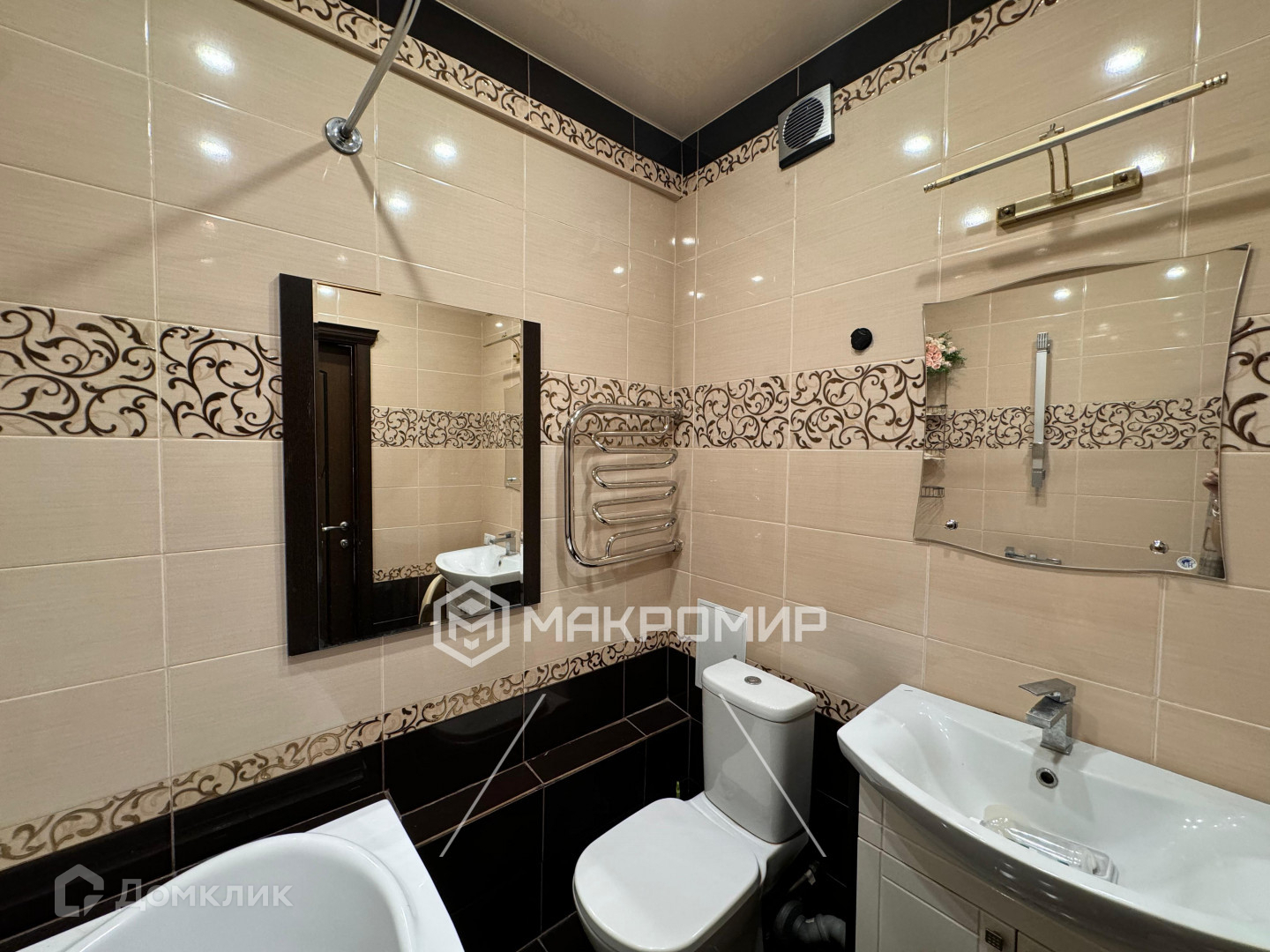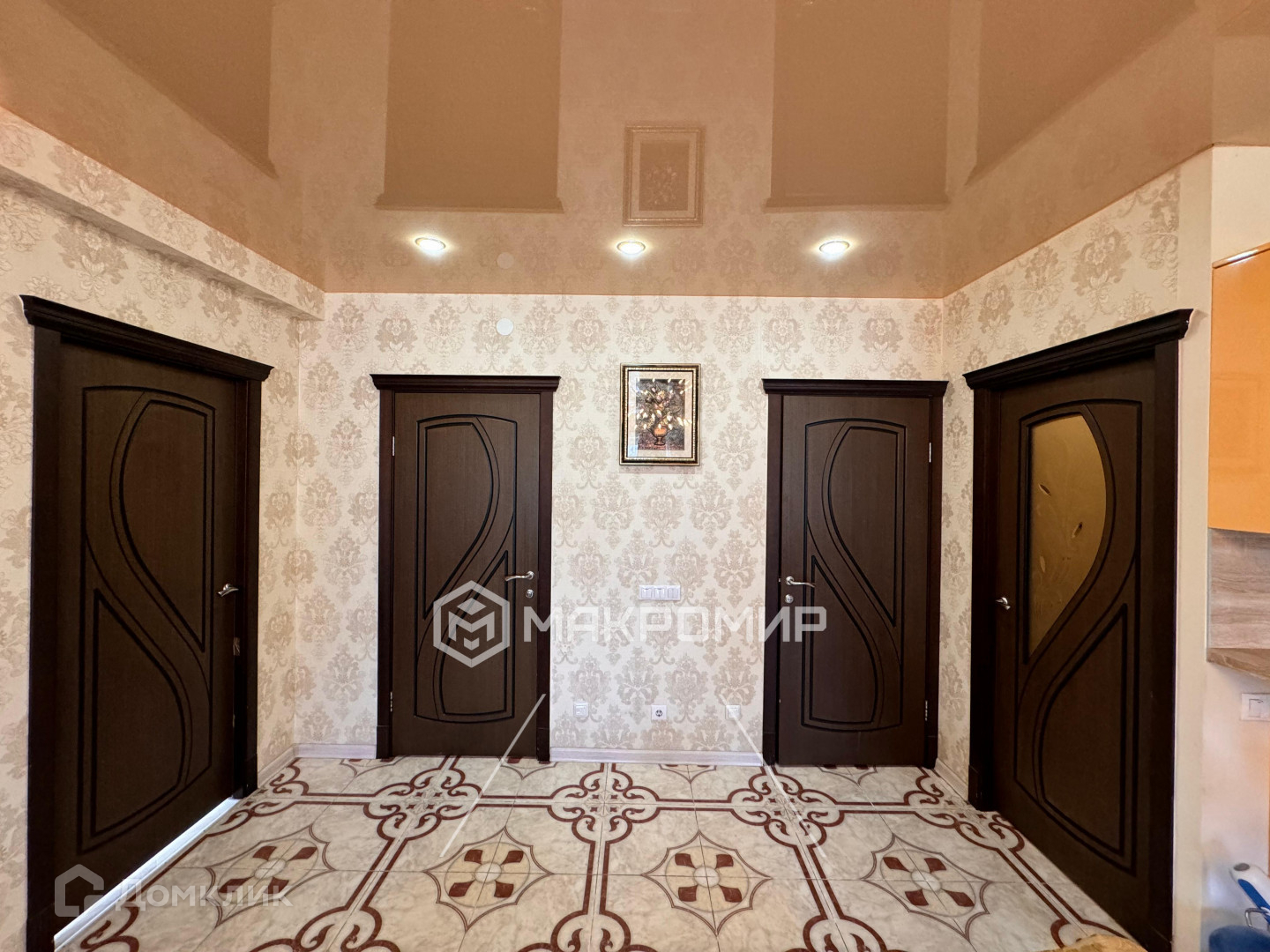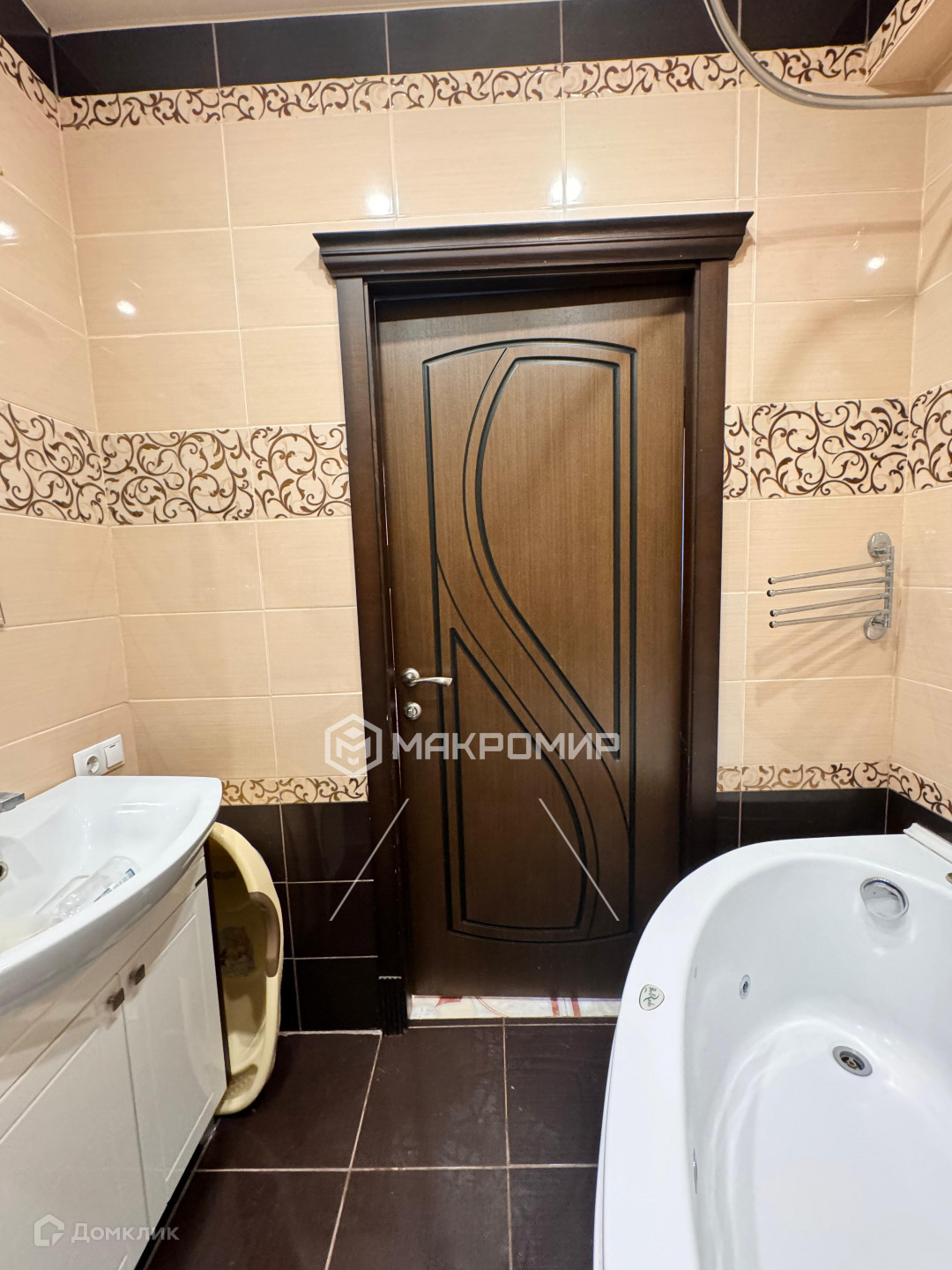 - Коридор с итальянской плиткой от пола до потолка, ванная комната в приятных оттенках кафеля
