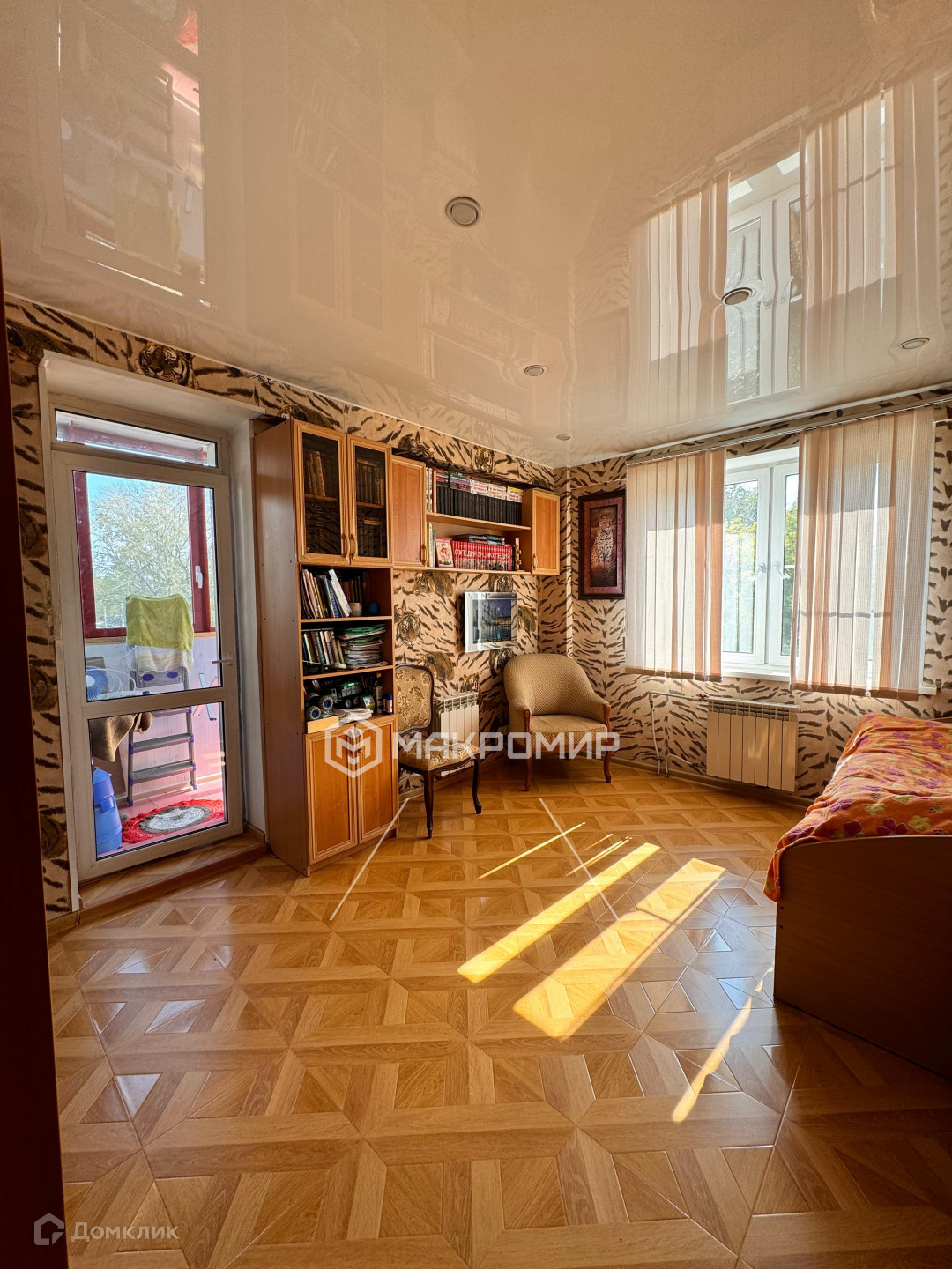 - Балкон застеклен, оснащен теплыми полами и электричеством