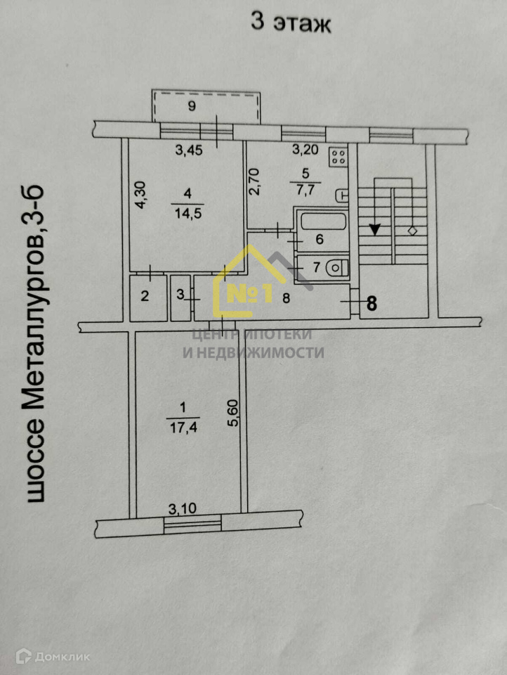 2-комнатная квартира, 54.5 м2, этаж 3 / 5, на продажу в Челябинске, шоссе Металлургов, 3Б