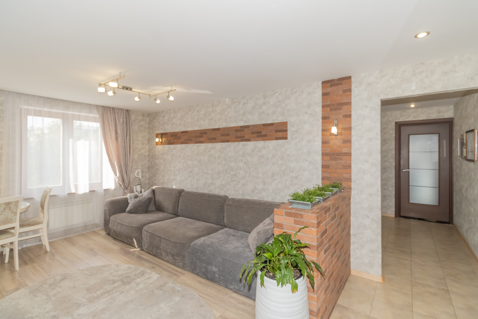 - БОЛЬШАЯ ГОСТИНАЯ 23.3 кв.м!  Грамотно спланированное пространство, делит гостиную на функциональную зону кухни и удобную гостиную. Два окна добавляют света и уюта.