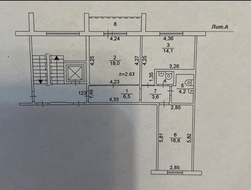Высота потолков 2.5 м