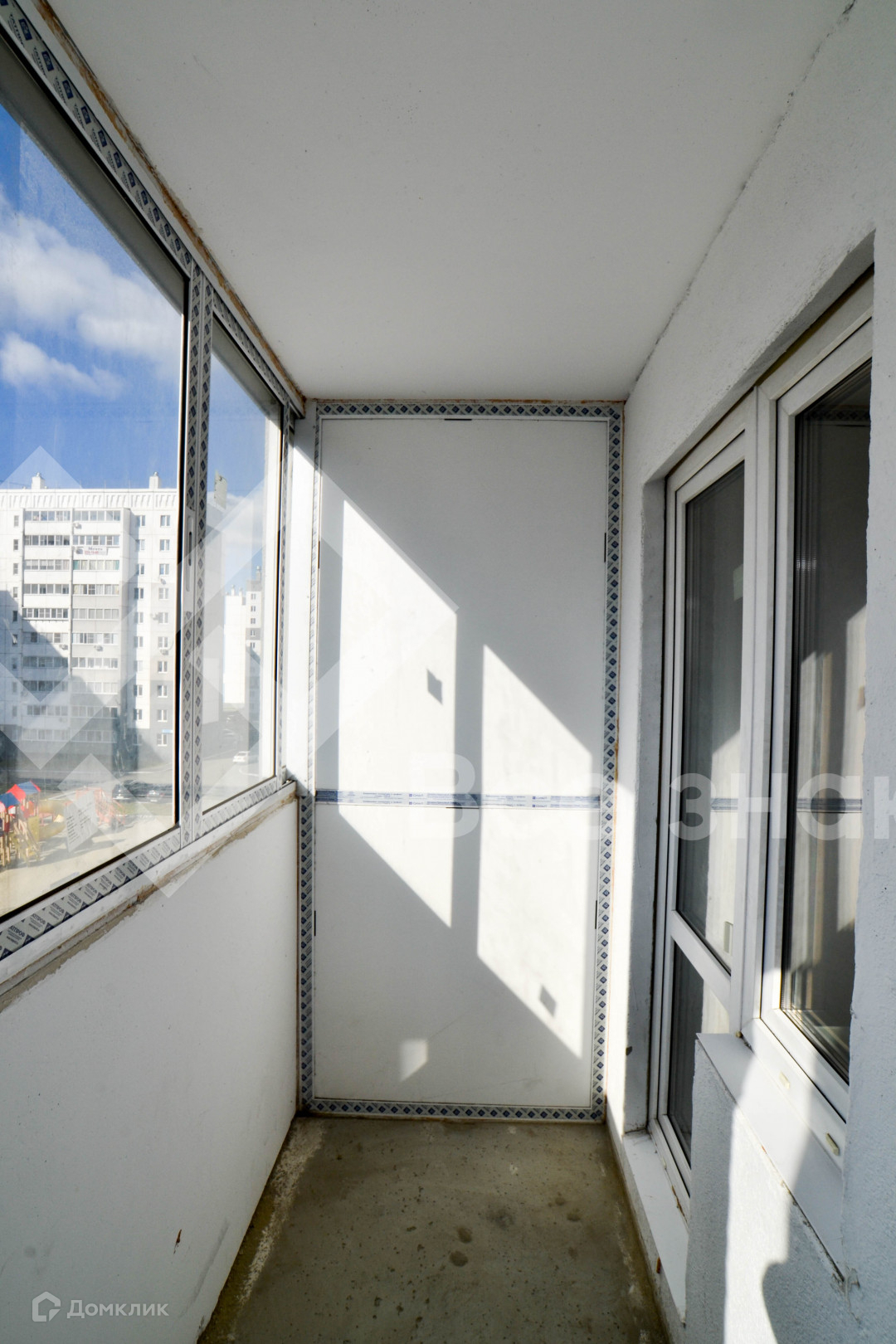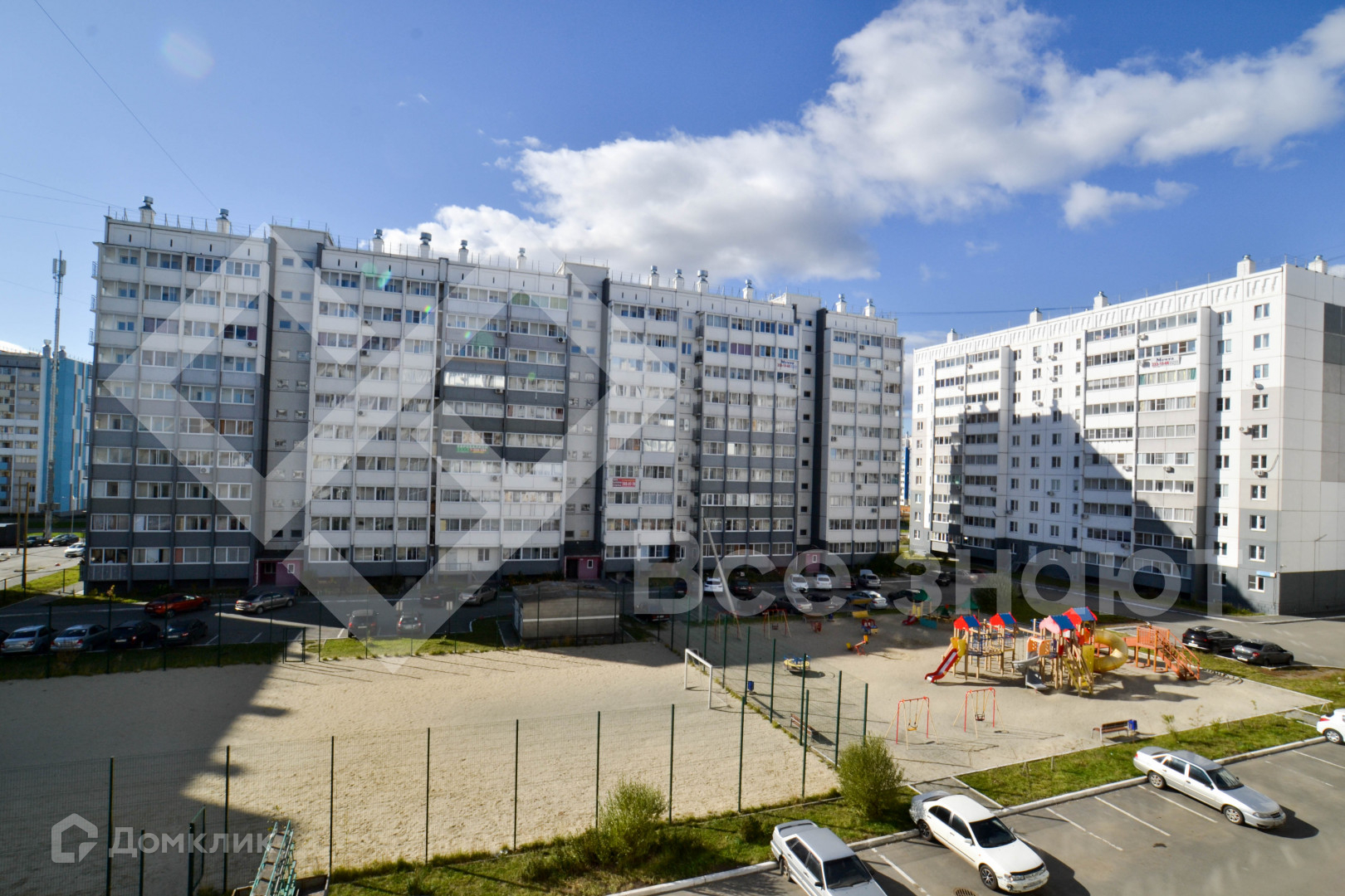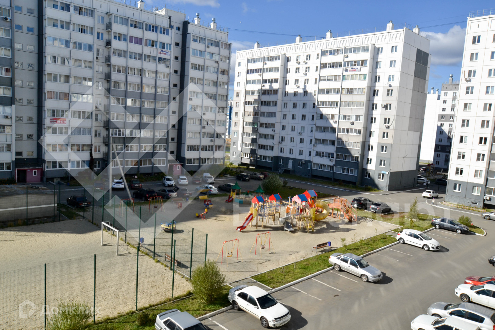 застекленный балкон выходит в закрытый двор с игровой спортивной площадкой.
