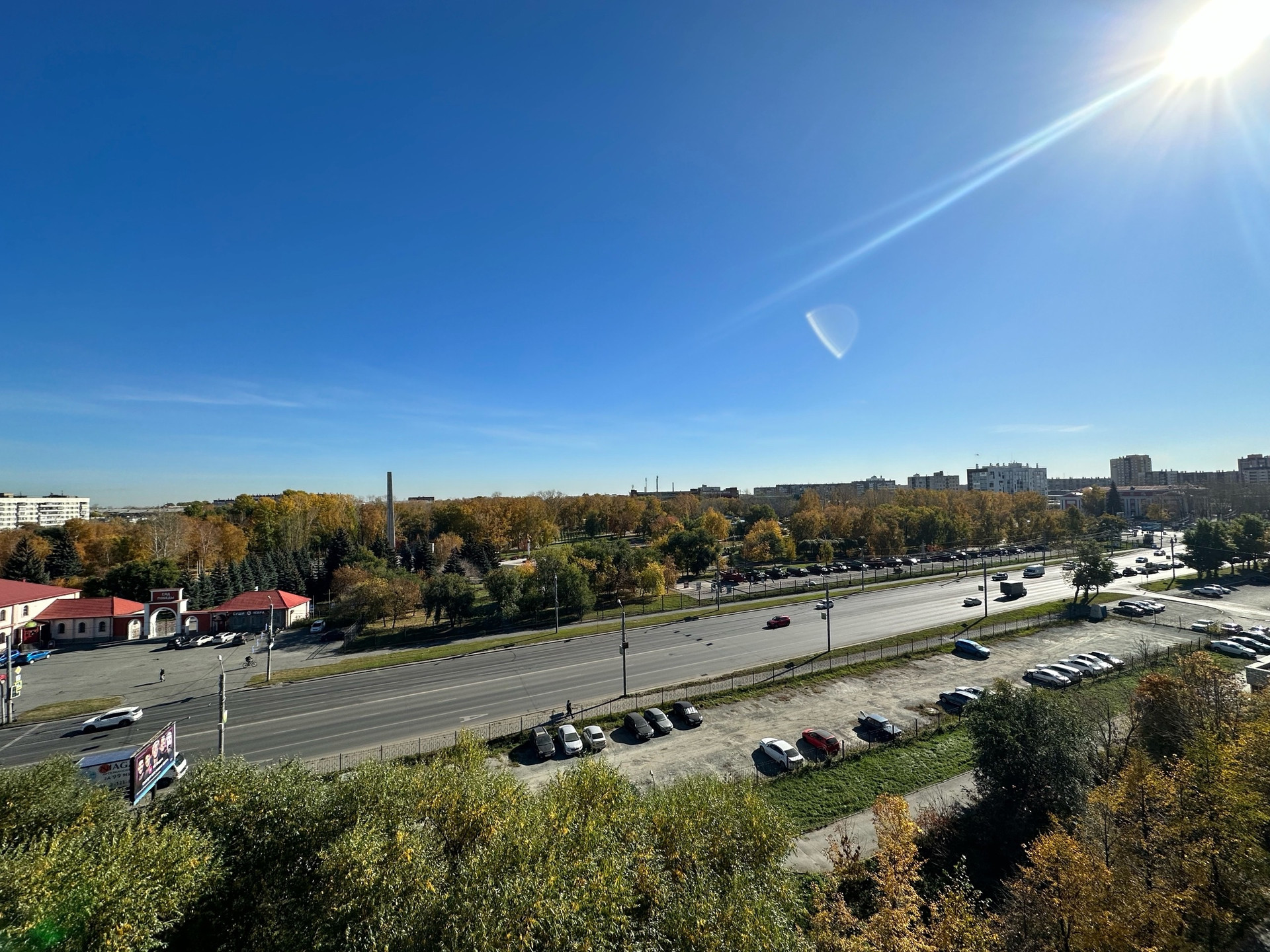 - 10 этажный дом 97 серии, между домом и улицей Героев Танкограда зеленая разделительная полоса