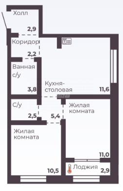Площадь кухни 11.6 м2