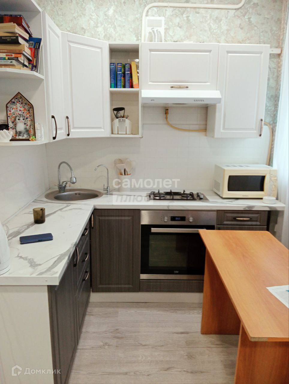 В квартире остаётся кухонный гарнитур, газовая плита с электрической духовкой, диван и шкаф. Окна выходят во двор, где живут тихие и спокойные соседи. Во дворе есть детский сад. Вся необходимая инфраструктура находится в непосредственной близости.