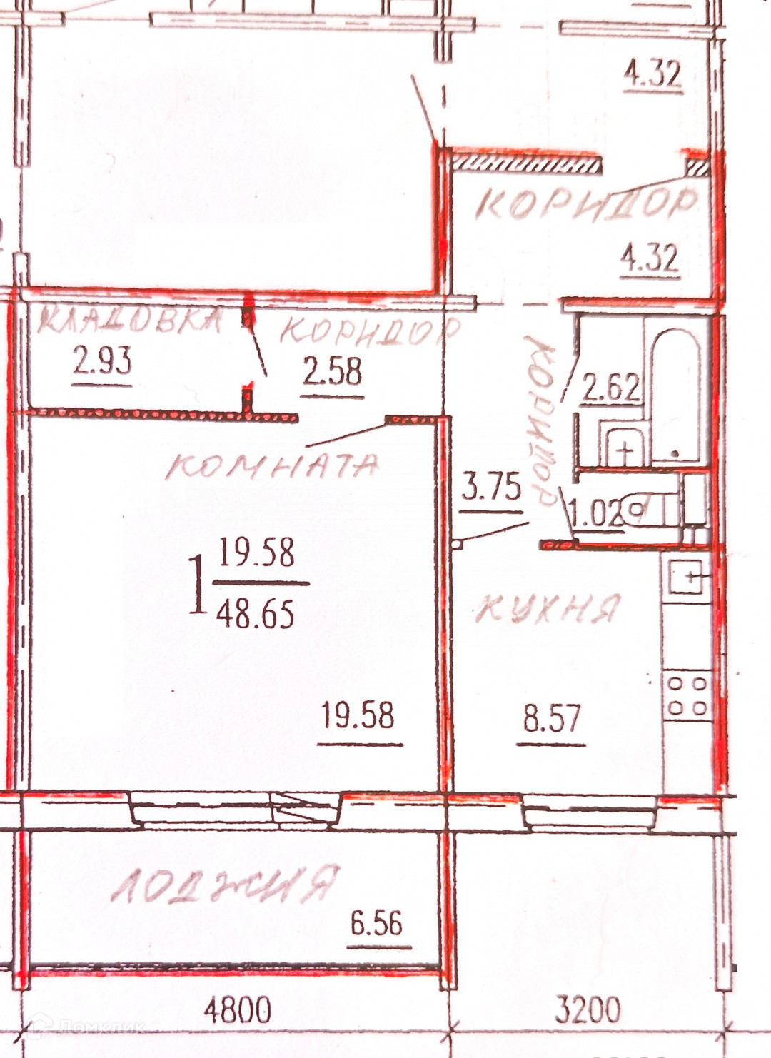 Балкон, лоджия 1 лоджия