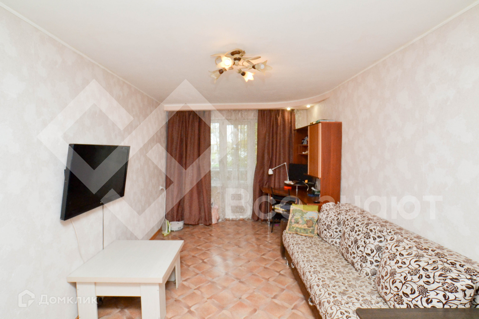В квартире выполнен косметический ремонт. На полу линолеум, на стенах обои. Ванная в кафеле. Новому собственнику оставим кухонный гарнитур, диван, остальную мебель по договоренности.