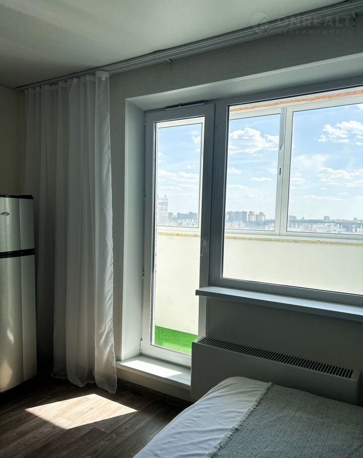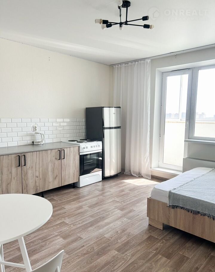 В студии выполнен новый современный ремонт. Вся мебель и техника остается новым собственникам. Комфортный 14 этаж 18-ти этажного дома, отличные соседи.