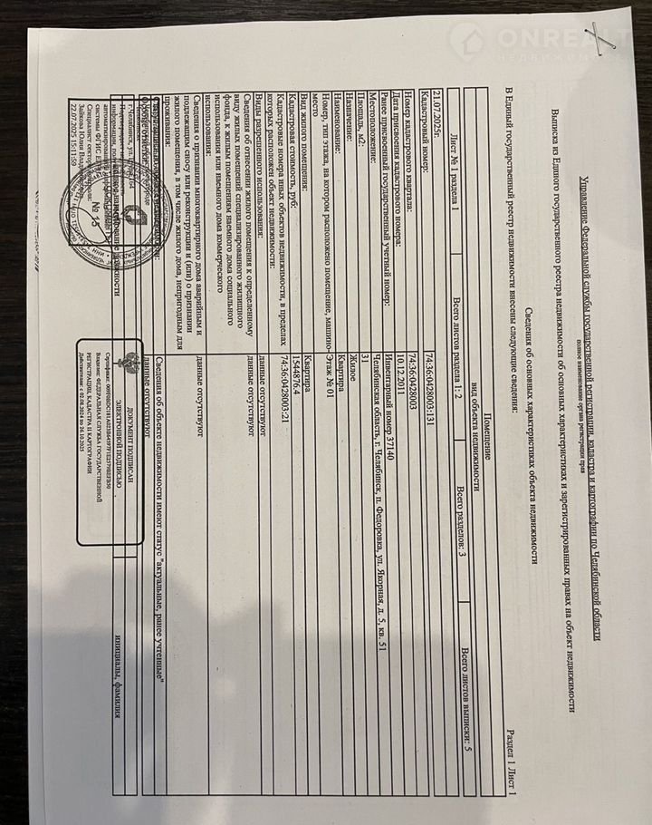 1-комнатная квартира, 34 м2, этаж 1 / 3, на продажу в Челябинске, Якорная улица, 5