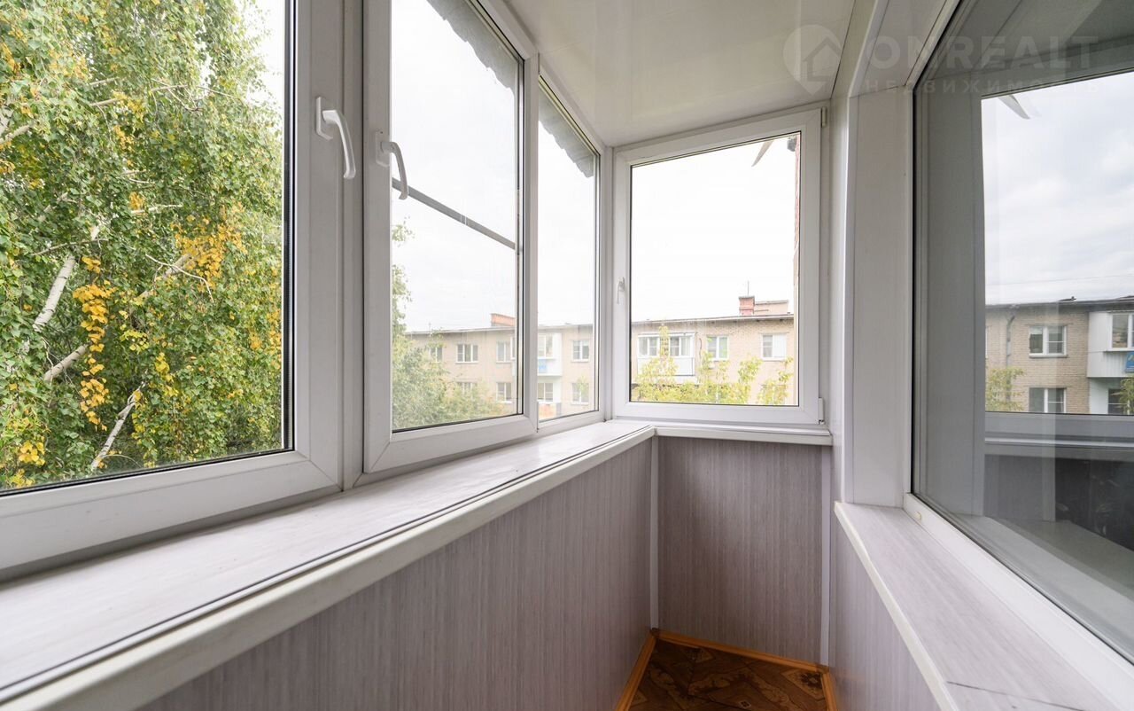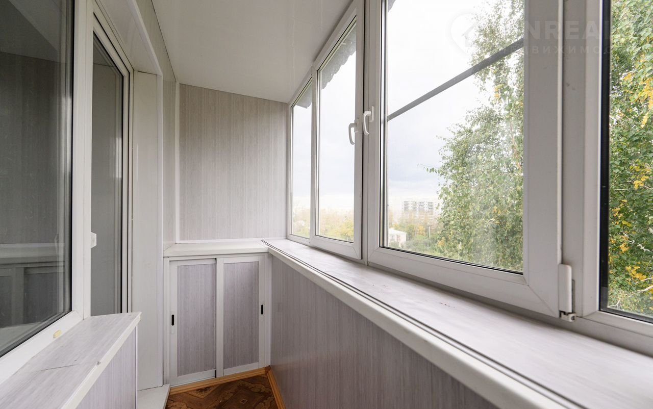☀️ Застекленный балкон: чистый и просторный, со встроенным шкафом для хранения чего-либо.