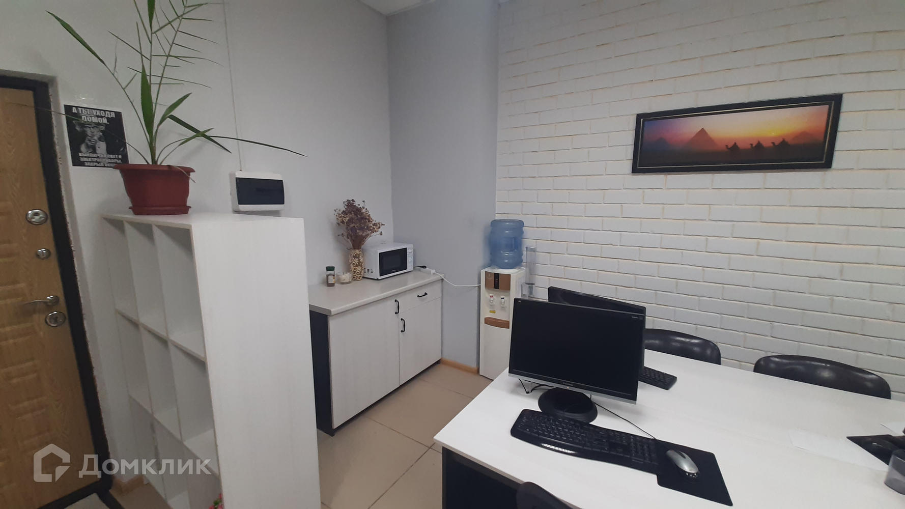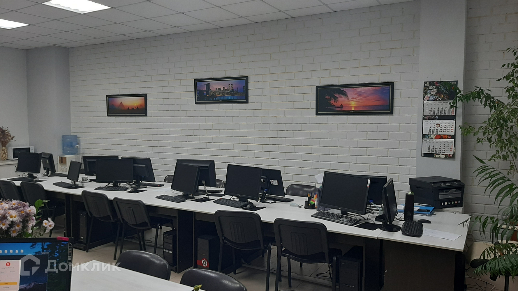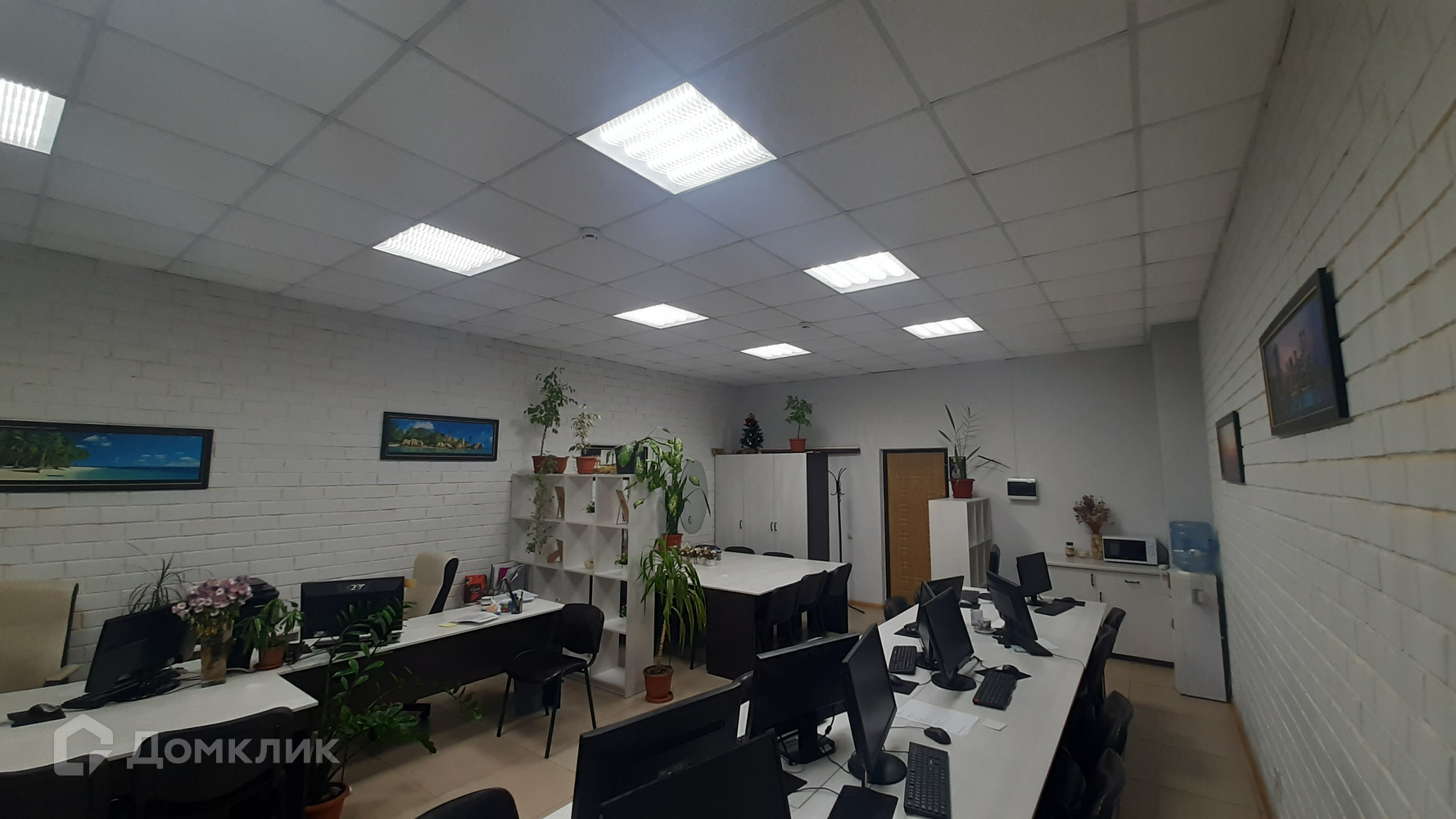 Офис просторный, оснащен 14-тью рабочими местами с персональными компьютерами. Также сделано зонирование помещения (зана кухни, рабочая зона, зона для упраляющего персонала и переговорная зона для клиентов). Останется новый кондиционер, шкаф для одежды, стелажи и шкаф для бумаг.