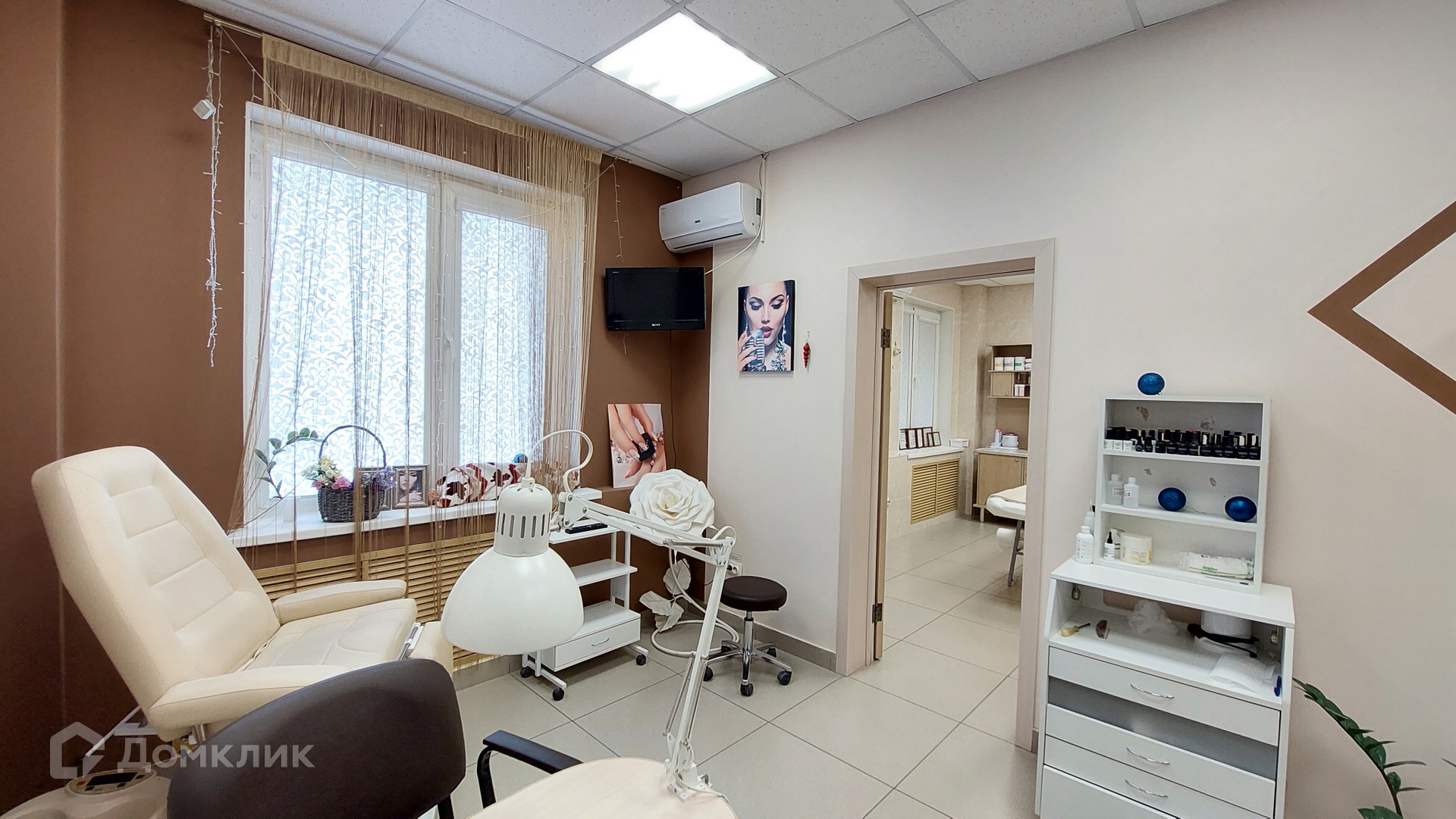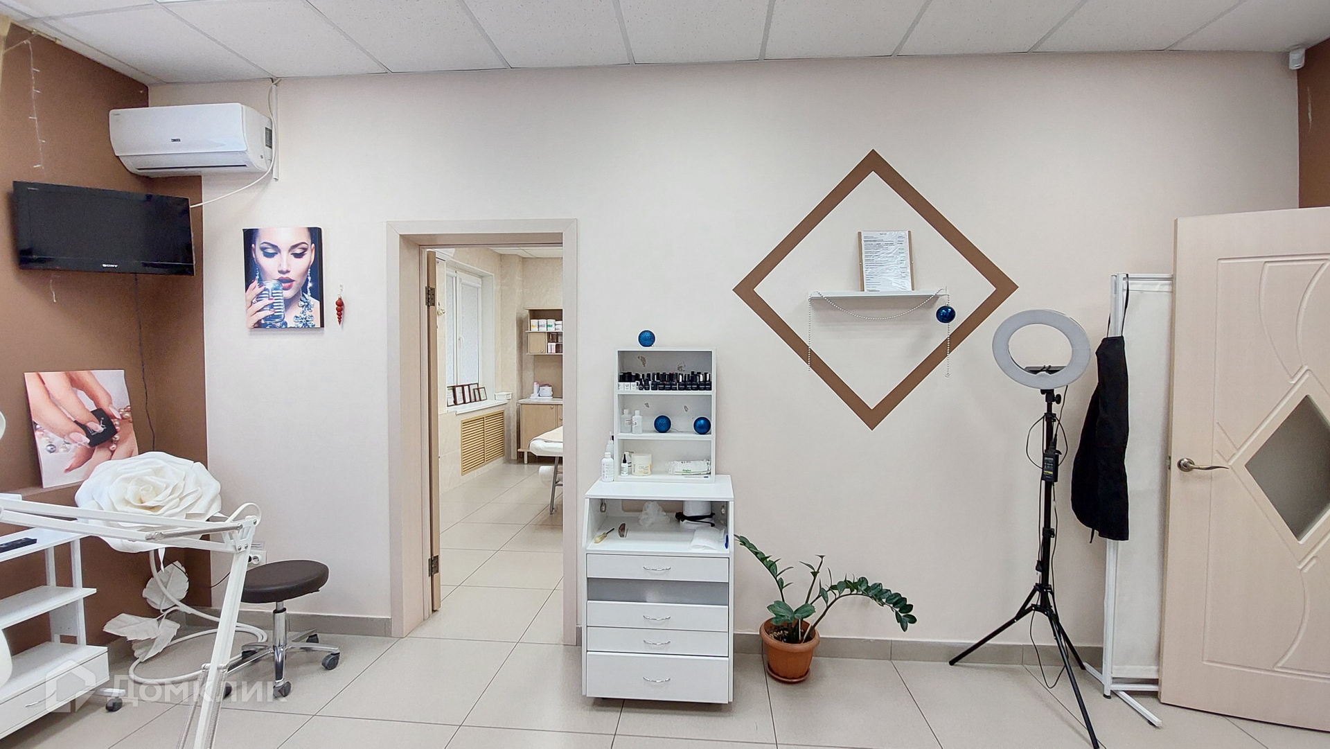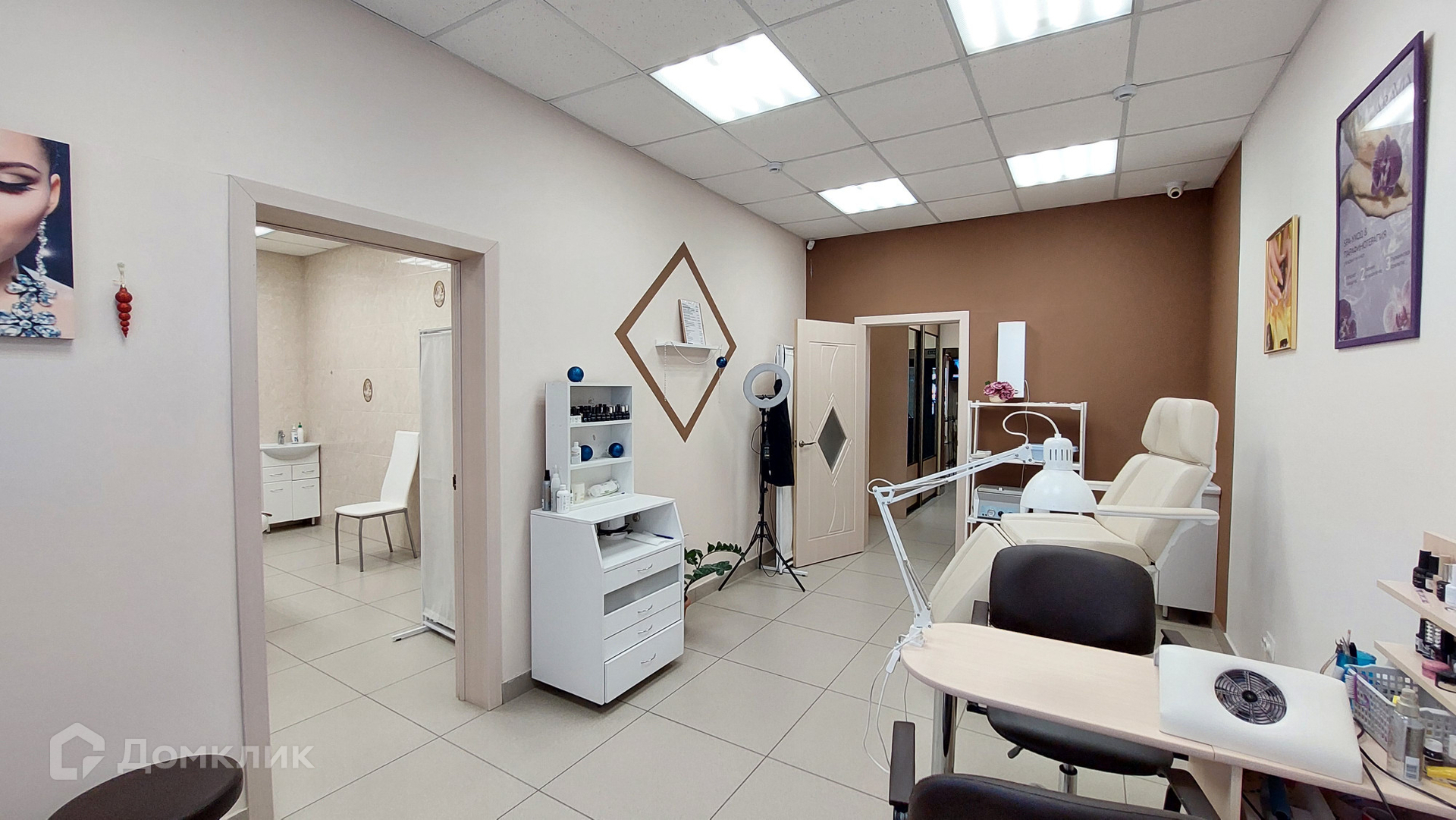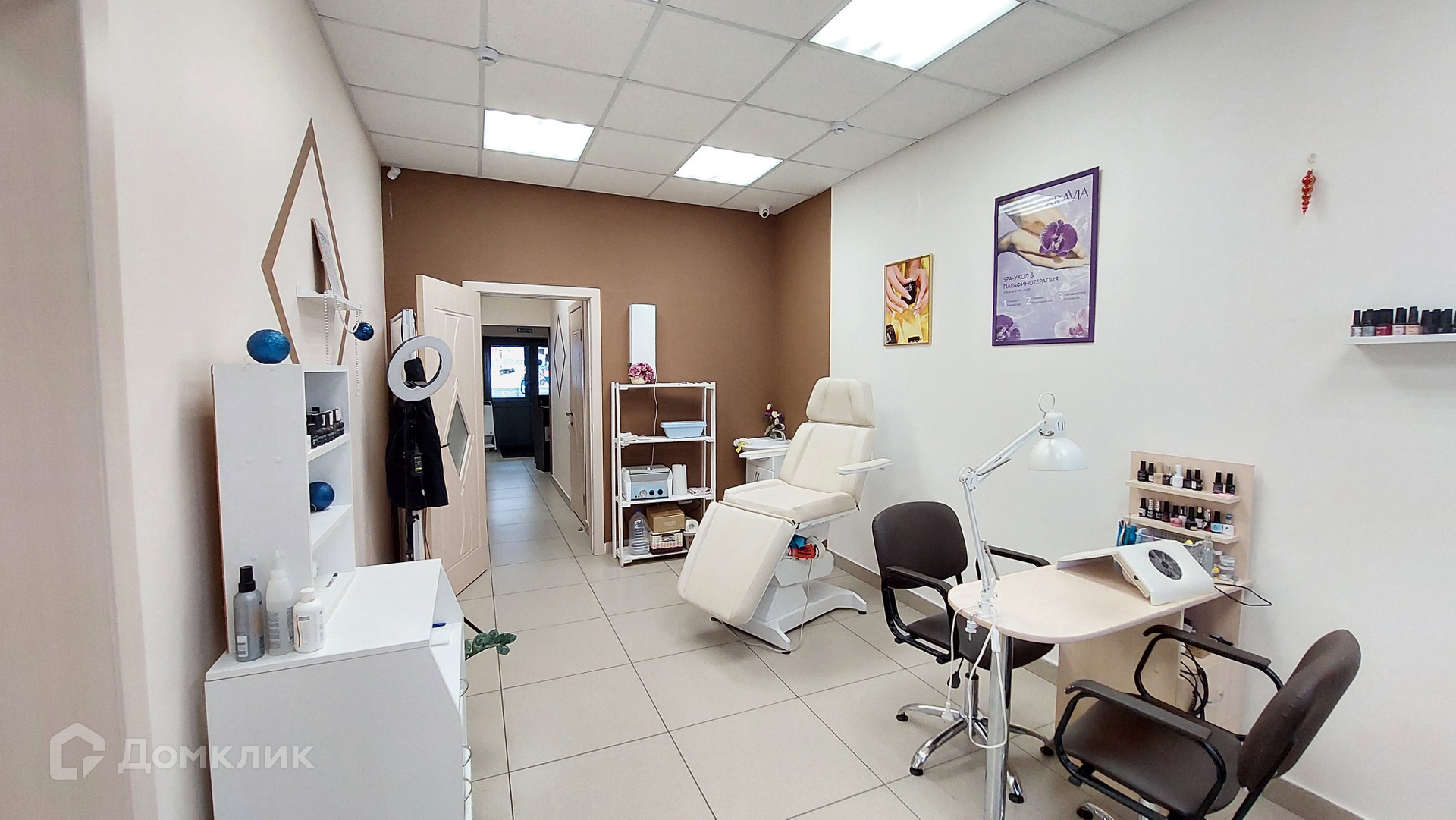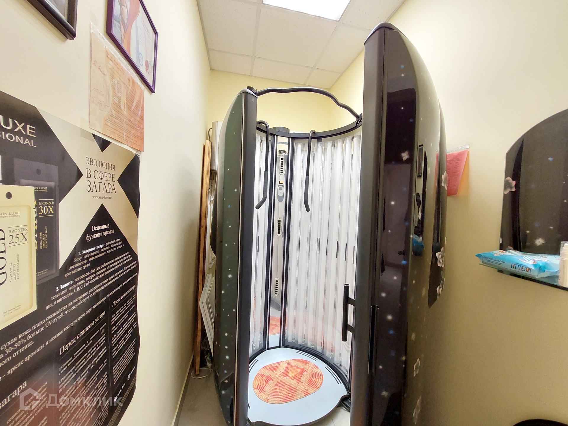 Помещение состоит из 3 больших залов с мокрыми точками, при входе зона ресепшн, установлен солярий в небольшой комнате, бытовая комната для персонала и санузел.