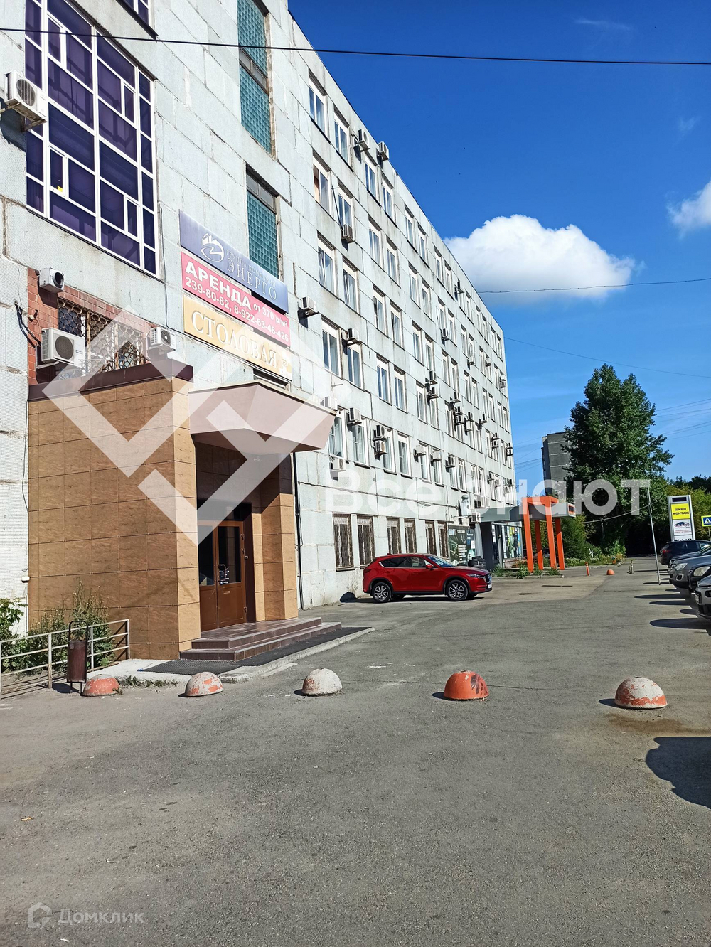 Вход в здание со сторны ул. Болейко, большая парковка.
