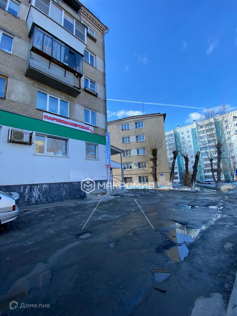 Удобный подъездной путь со стороны пр.Победы, обустроены парковочные площадки на прилегающей территории.