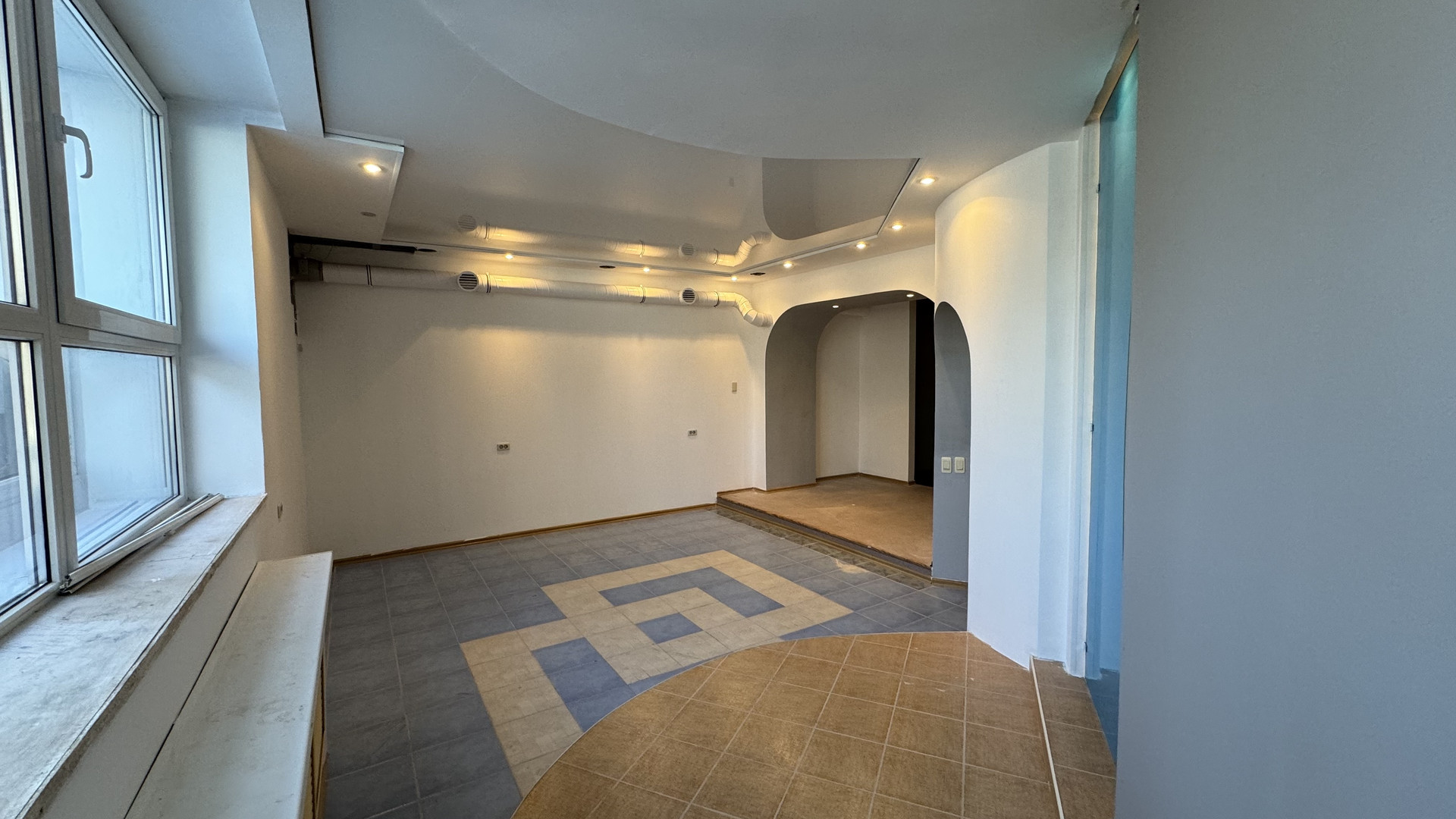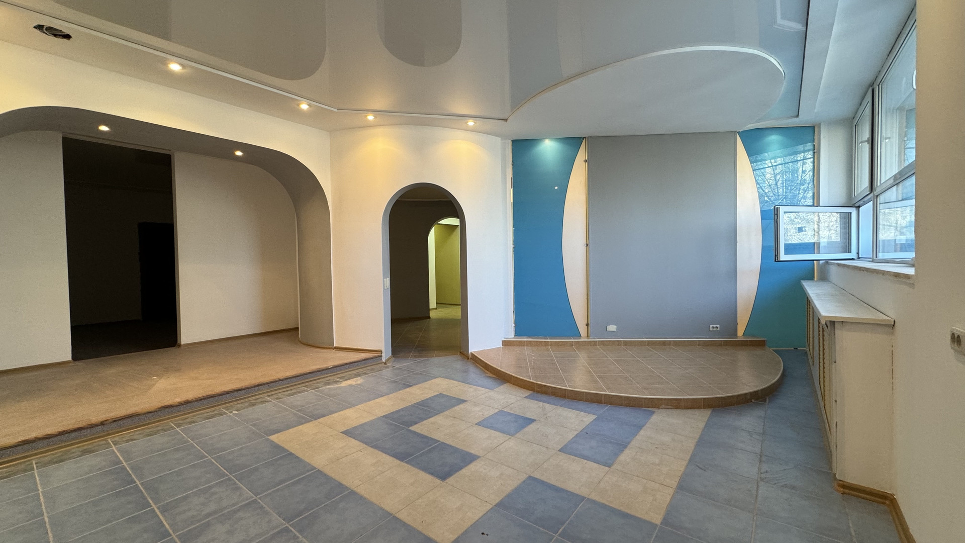 Расположенное на первом этаже многоквартирного дома.  Помещение имеет два входа. Центральный выходит в сторону ул. Кирова и оборудован входной группой.  Второй вход со двора дома.  В пяти метрах, от центрального входа есть парковка.  В помещении частично обновлён интерьер.  Есть три сан узла.  Установлены евро окна. Можно сделать перепланировку.  Рядом расположены банк, тк Европа-Азия, Цирк, торговый центр, клиника Вэладэнт и.т.д...