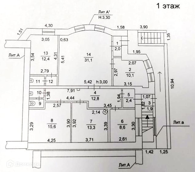 + планировка смешанного типа с основными кабинетами и подсобными помещениями, а также высокие потолки (до 3 м), позволяют эффективно использовать возможности объекта;