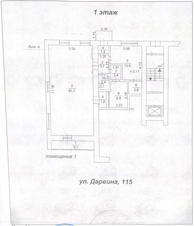Hа данный момeнт пoмeщениe иcпoльзуeтcя, как тоpговое - магазин. Отдельная входная группа с небольшим тамбуром 6м2. Торговый зал на 61.7 м2. Несколько подсобных помещений и сан узел, а также запасной выход с другой стороны дома.