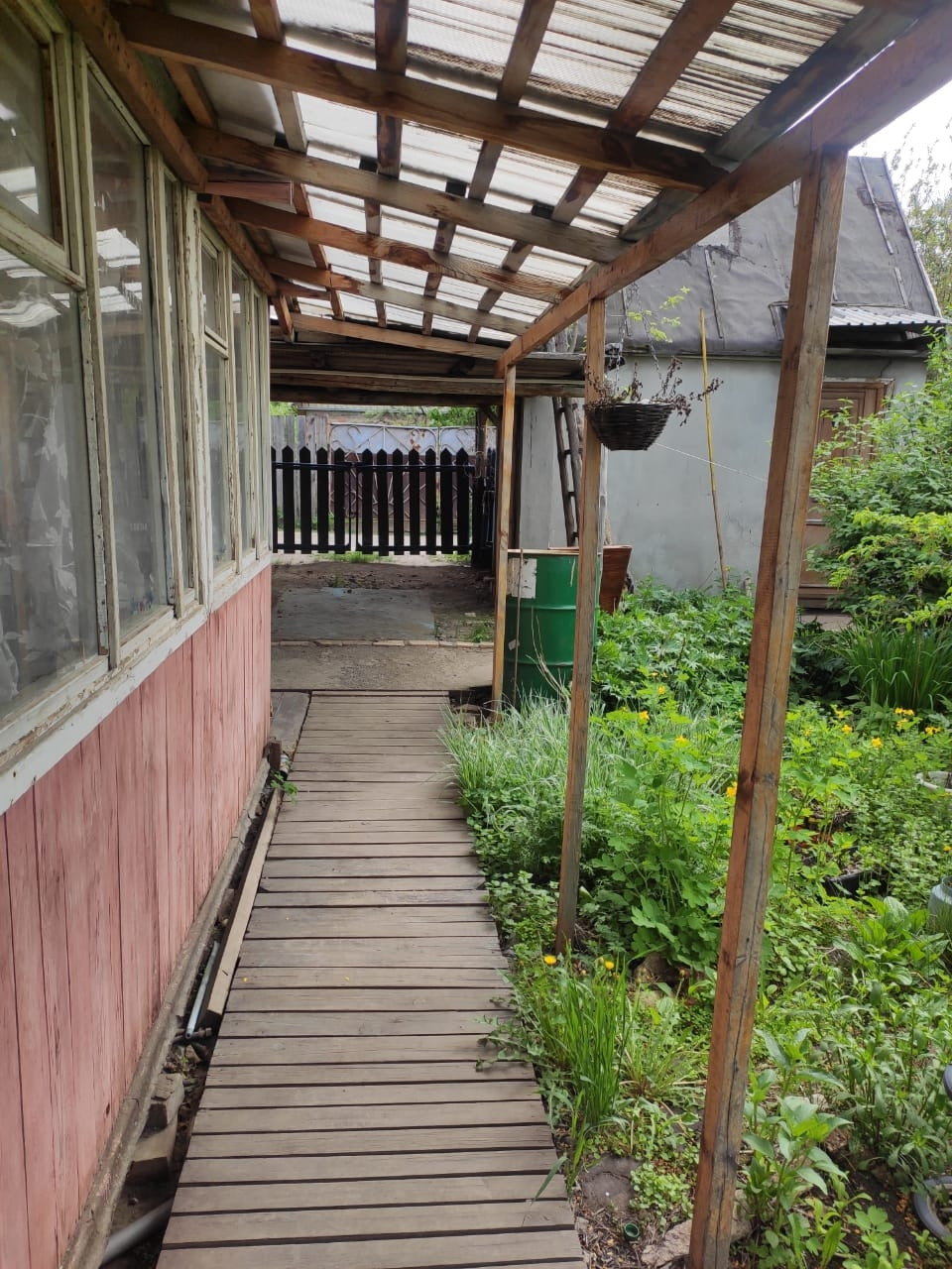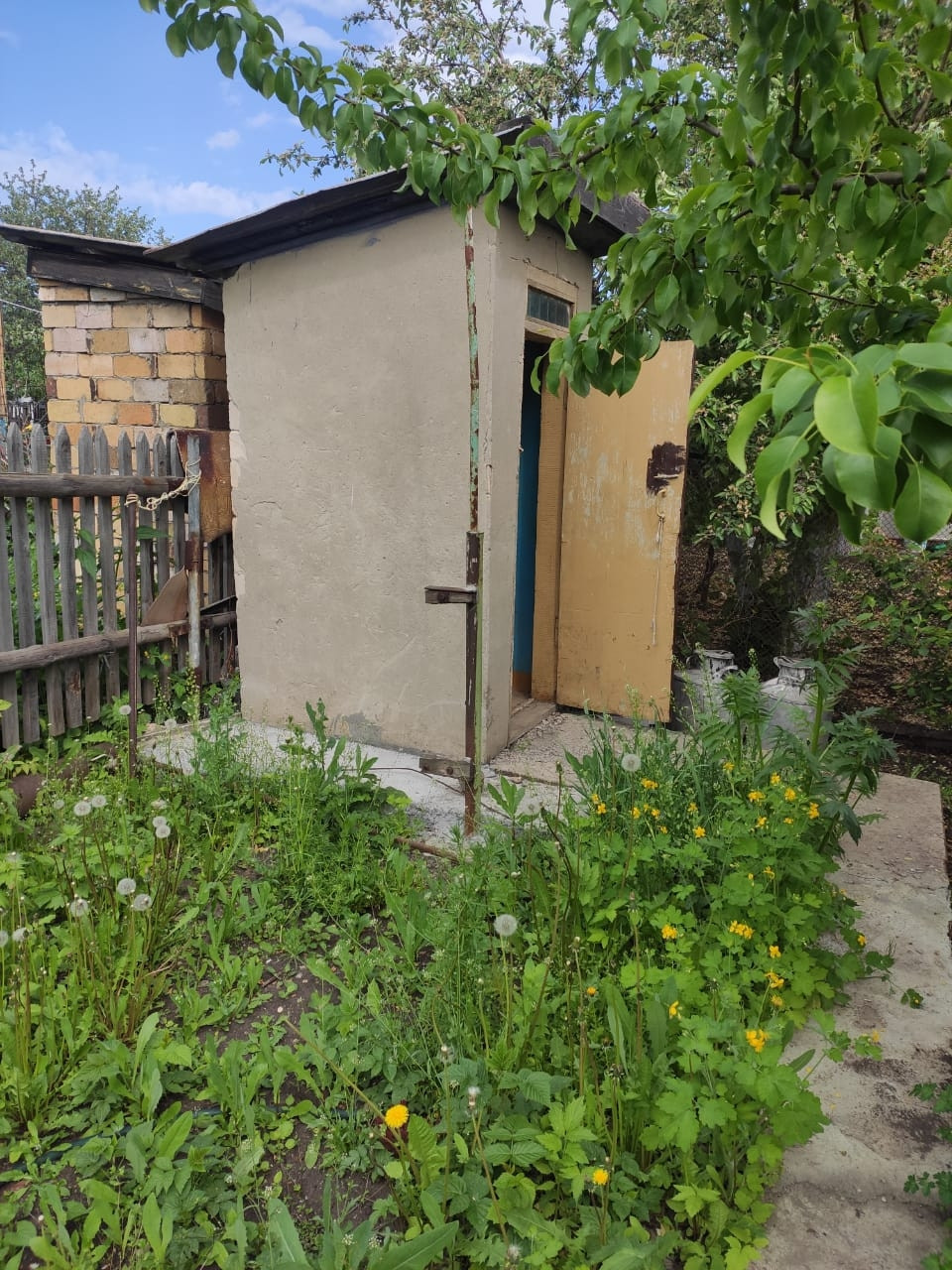Плодоносящие деревья, 2е теплицы. Одна из поликорбаната, место для бассейна, в доме печь, электричество.торг