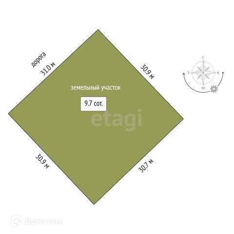 Площадь участка 9.7 сот.