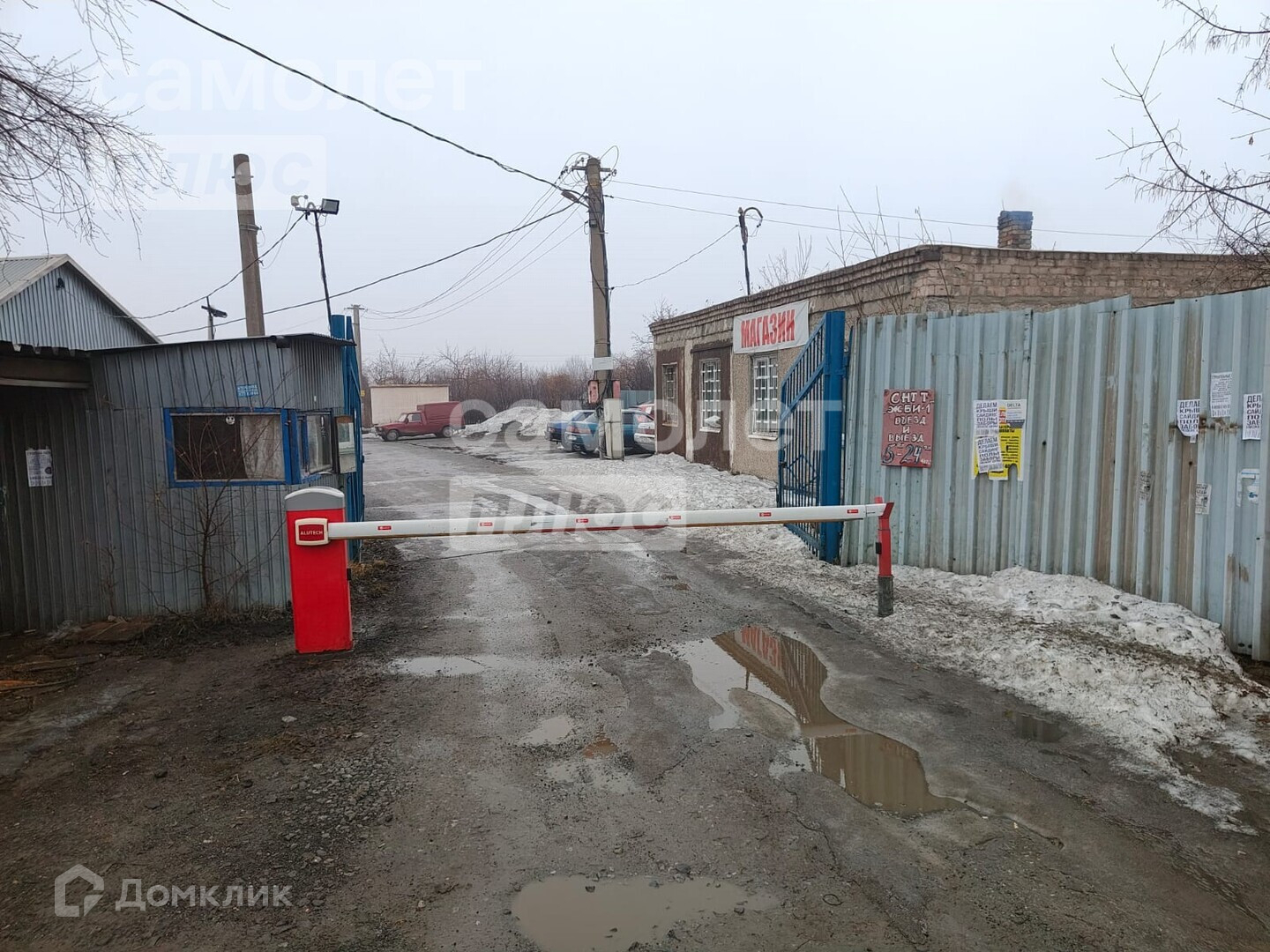 Въезд на территорию СНТ через шлагбаум, центральная улица асфальтирована, в планах на всех улицах проложить асфальт.