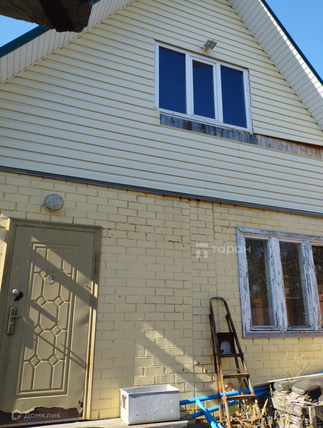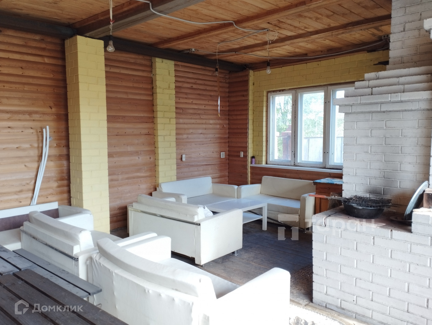 Дом 200 кв.м. Два этажа. Фундамент ленточный.(крепкий).Материал стен кирпич. Изнутри стены утеплены, зашиты деревом. Есть баня. Действующий камин.