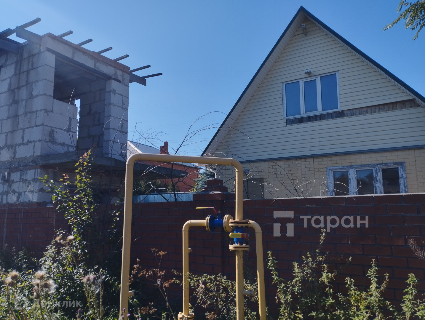Забор из кирпича. Рядом с участком газ.