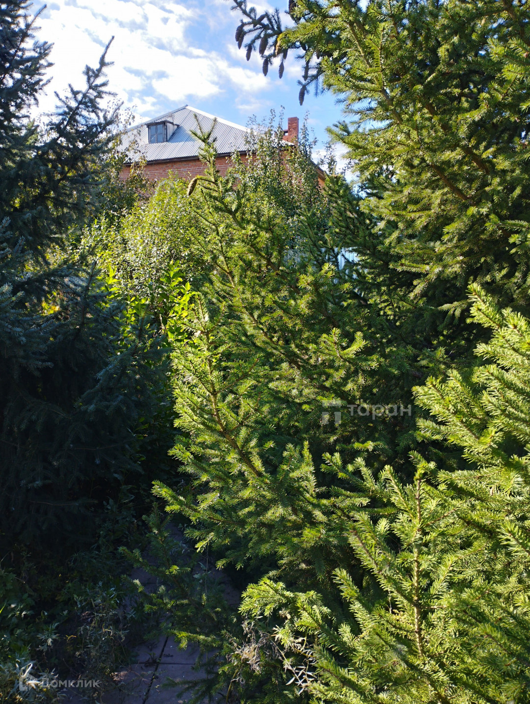 Есть плодовые и хвойные деревья.
