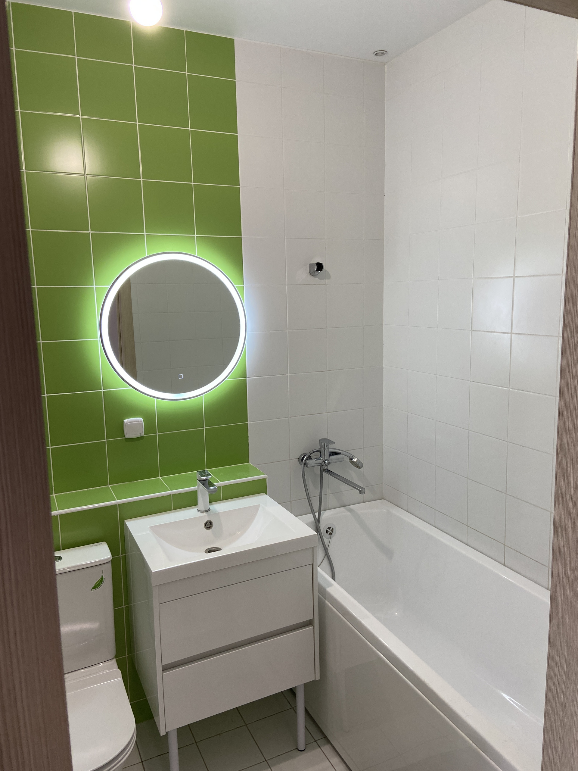 • Кафель в санузлах до потолка, установлены счетчики)
