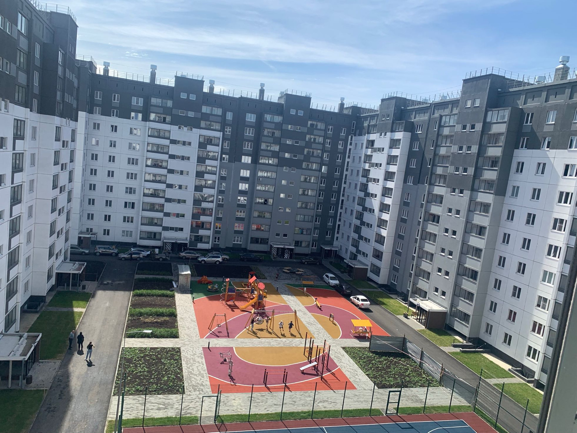 Квартира на 7 этаже, окна выходят во двор. Закрытая территория, двор без машин.
