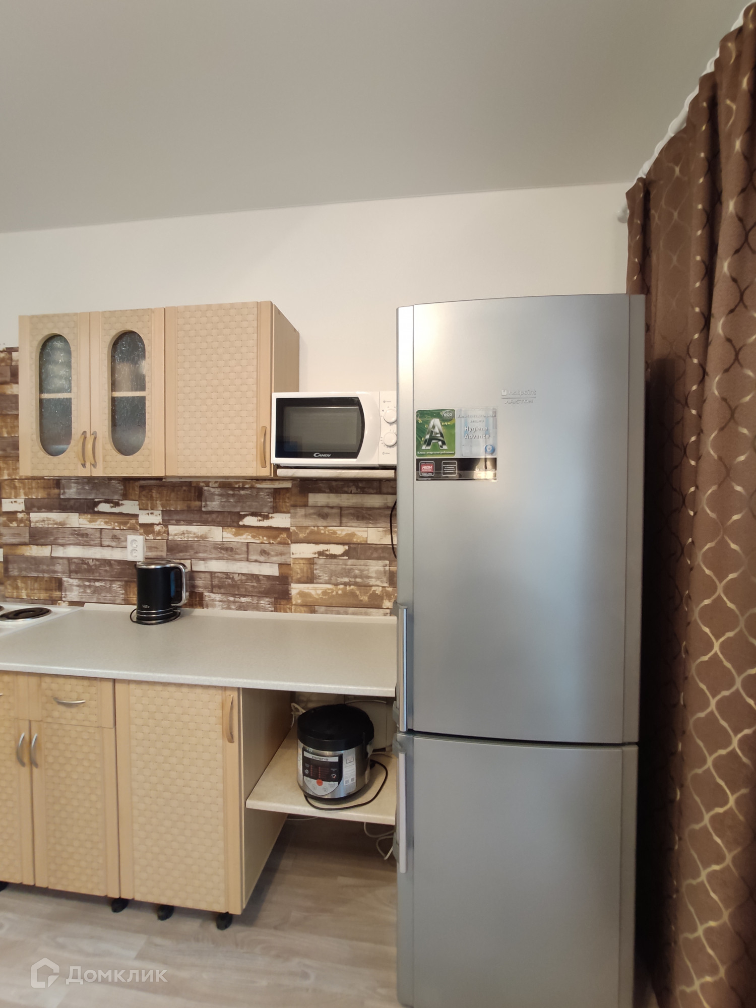- Кухонный гарнитур, микроволновка, мультиварка, чайник, вытяжка, электроплита,