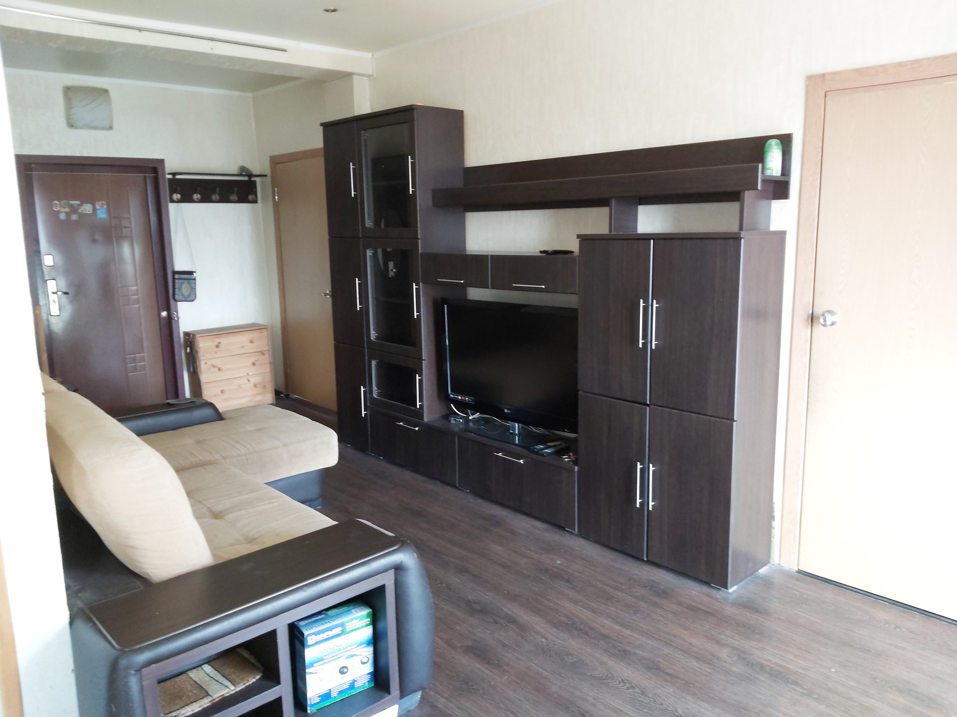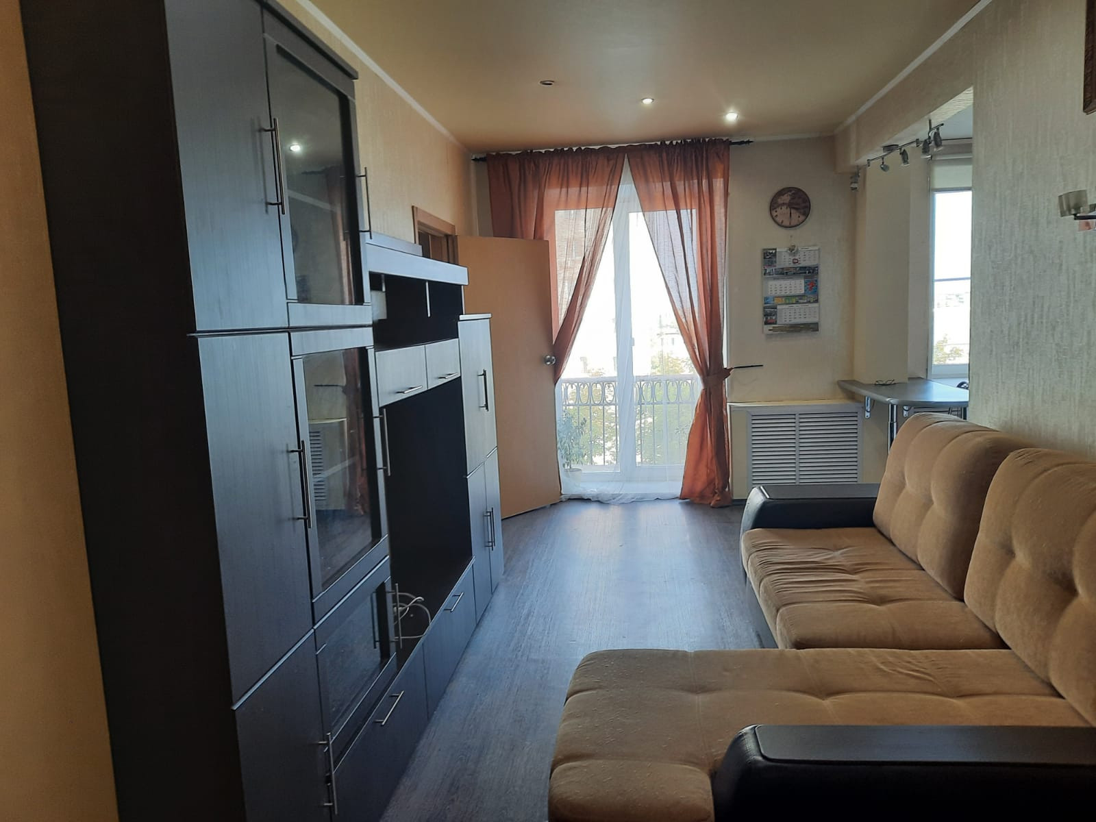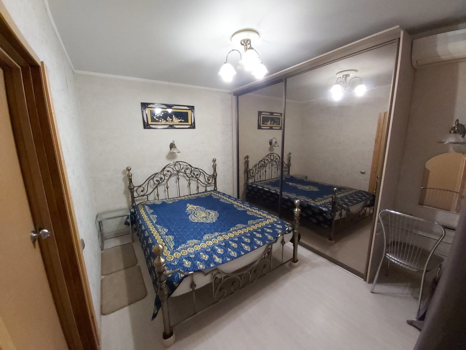 Квартира дизайнерская. Зал и кухня представляют единое светлое пространство - студию. Кухонный гарнитур. Настенные шкафы оборудованы подсветкой. Большой двухкамерный холодильник, микроволновка. В этой зоне — пластиковое окно и пластиковая дверная группа на балкон, с остеклением до пола. В спальнях — новые деревянные рамы. Имеется вся необходимая мебель для комфортного проживания. В гостиной двустворчатый шкаф и горка, большой угловой диван, телевизор 42" . В большой спальне большой шкаф купе с зеркальными дверями, двуспальная кровать в винтажном стиле, стеклянные туалетный столик и тумбочка, настенные бра и трехрожковая люстра в едином стиле. В спальне сплит -система, мощности которой хватает и на студию. В малой спальне шкаф купе во всю стену, средняя дверь зеркальная, 2 компьютерных стола, компьютерный стул. В ванной комнате большое зеркало, теплый пол с регулировкой температуры, стиральная машинка — автомат и акриловая ванна. Окна выходят на смежные стороны дома, что способствует естественной вентиляции.