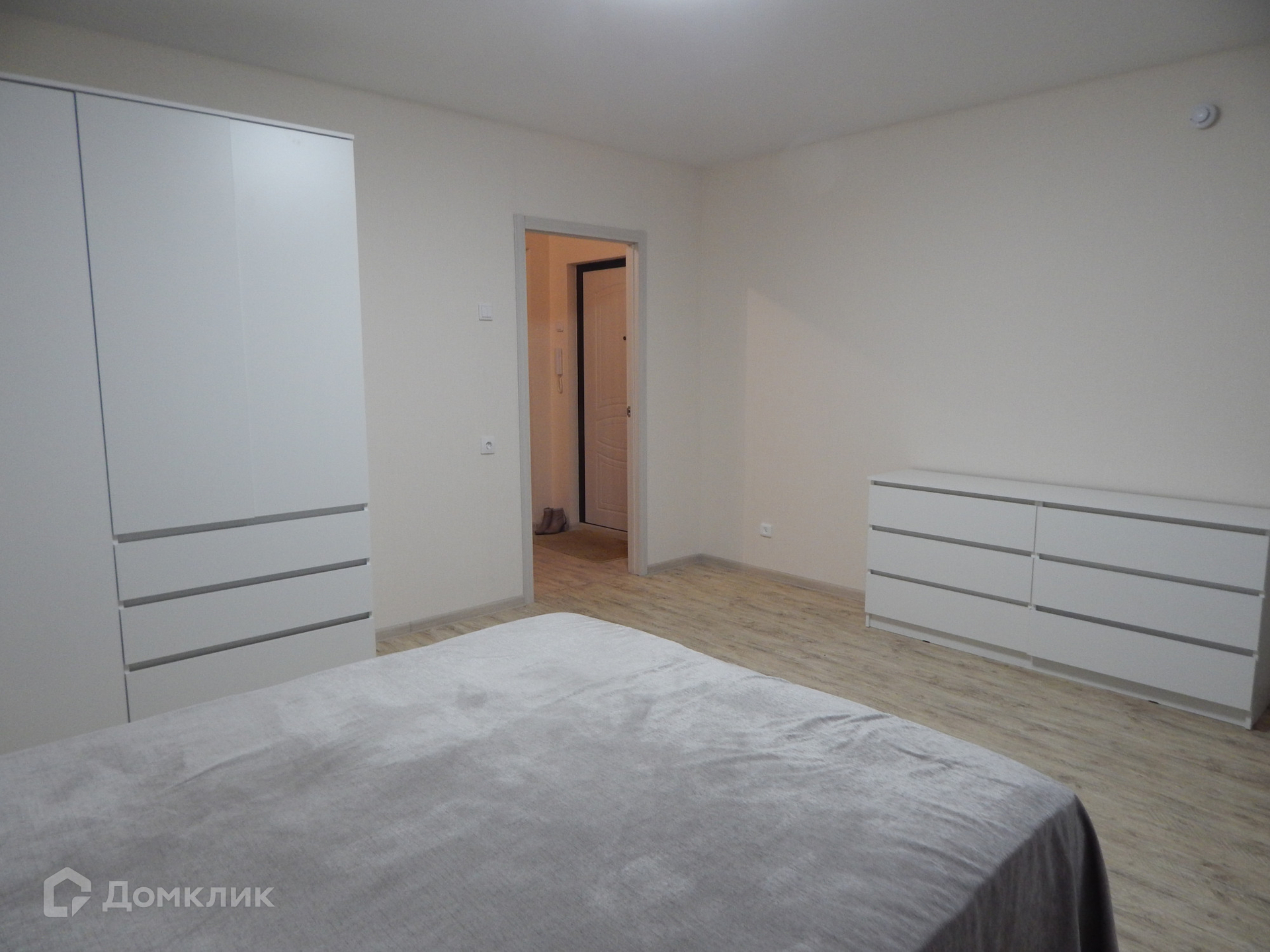 Предлагаем просторную квартиру в новом доме,  комнаты на разные стороны, площадь кухни-гостиной 18,2 м2, комнаты 18 м2, имеется просторная гардеробная, отделка: натяжные потолки, виниловые обои, линолеум, с/у совмещенный в кафеле, имеется вся необходимая мебель и техника, все новое, дополнительно оплачиваются электричество и вода по счетчикам, сдается на длительный срок,