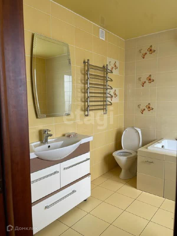 В кухне расположена просторная обеденная зона, лоджия совмещена с основным пространством. Просторная гостиная с 2 раскладываемыми диванами, телевизором и зоной с журнальным столиком. В спальне установлена двуспальная кровать, телевизор, прикроватные зоны. Есть оборудованная гардеробная. Вторая спальня пустая, может использоваться как продолжение гардеробной, зона для хранения вещей или оборудовать спальными местами. В квартире два санузла.