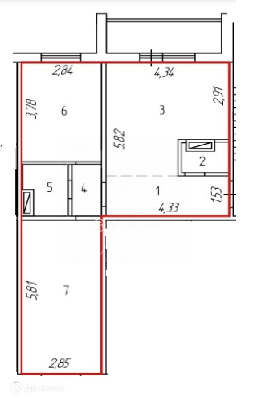 Общая площадь 56.3 м2