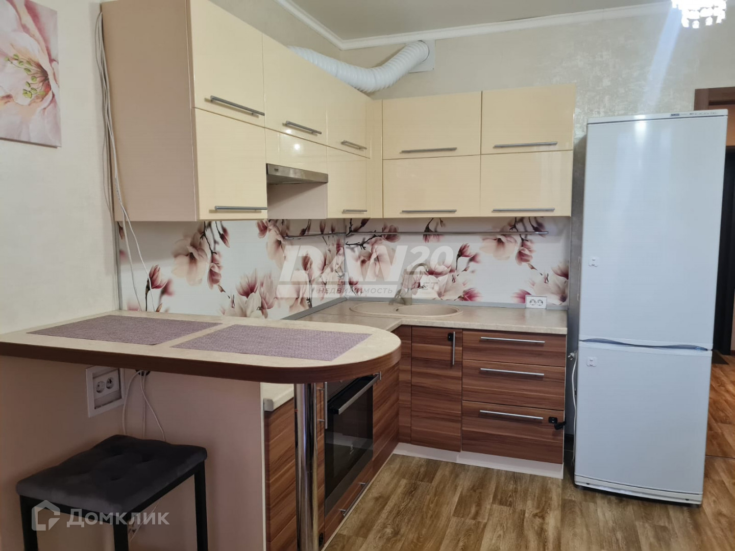 В квартире выполнен качественный ремонт, есть вся необходимая мебель и техника:  два дивана раскладывающихся , детская кровать, места для хранения, холодильник, стир/машина, кухонный гарнитур с варочной поверхностью и дух/шкафом.