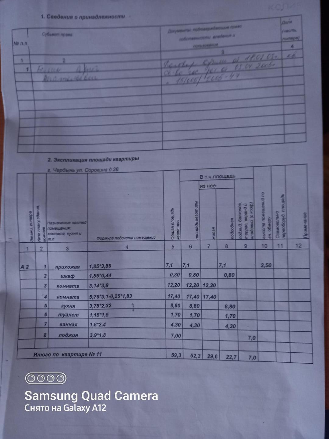 2-комнатная квартира, 59.3 м2, этаж 2 / 2, на продажу в Чердыни, улица Сорокина, 38