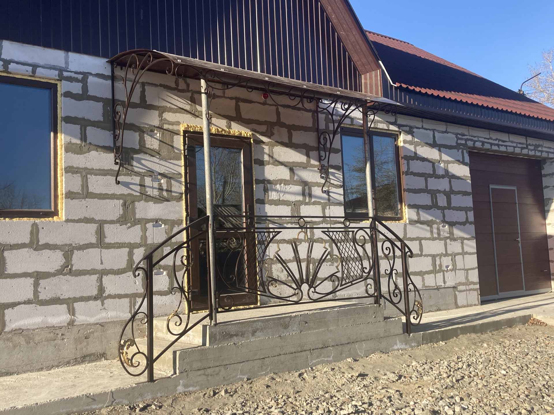 Дом построен с дальнейшей перспективой увеличением квадратных метров второго этажа на втором этаже будет располагаться две больших комнаты с санузлом с внутренней отделкой, отоплением в доме и гараже тепло ,стены готовы под обои ,натяжные потолки ,электрика ,сантехника , освещение, охранная и пожарная сигнализация ,ванная комната.
