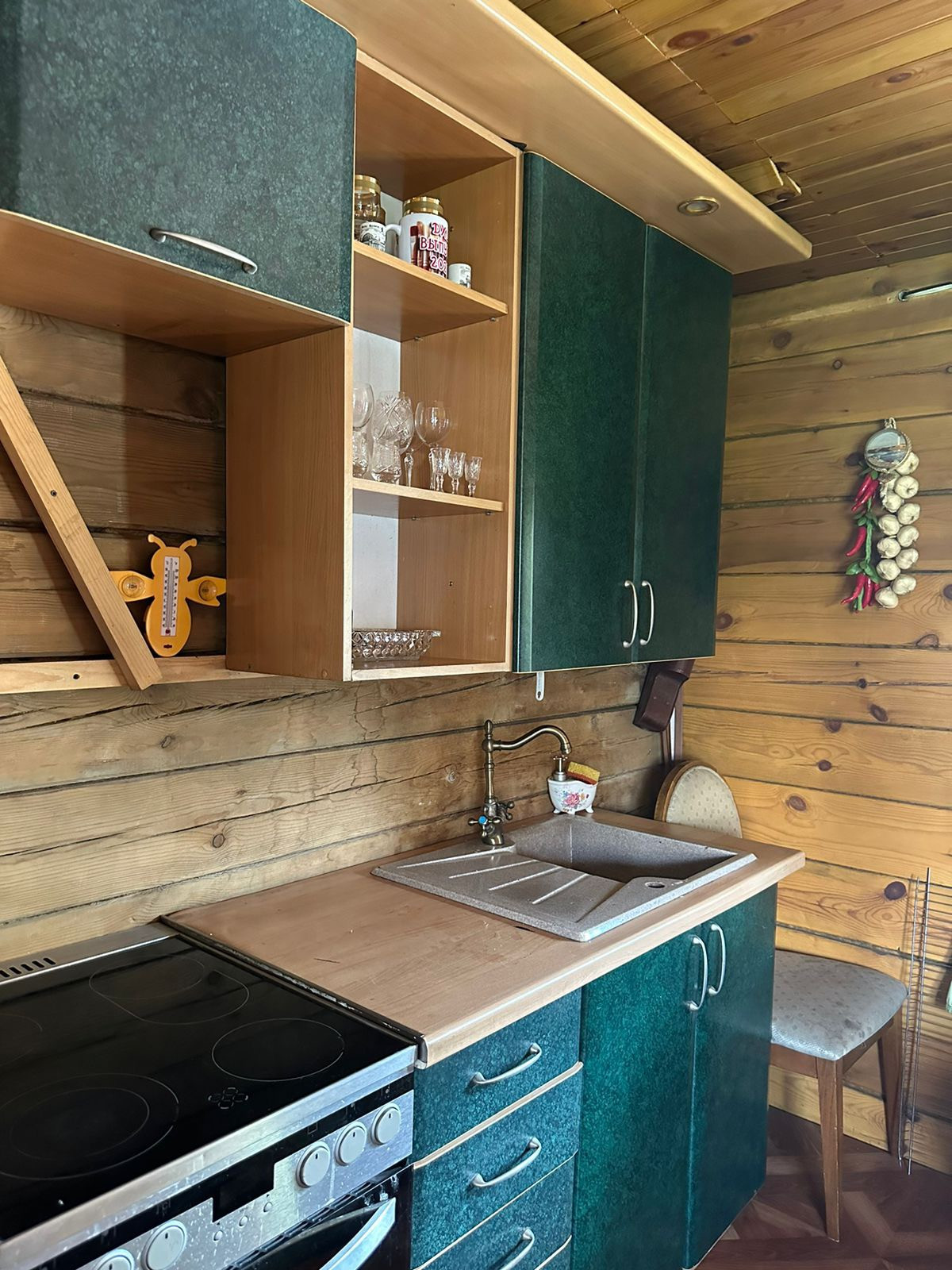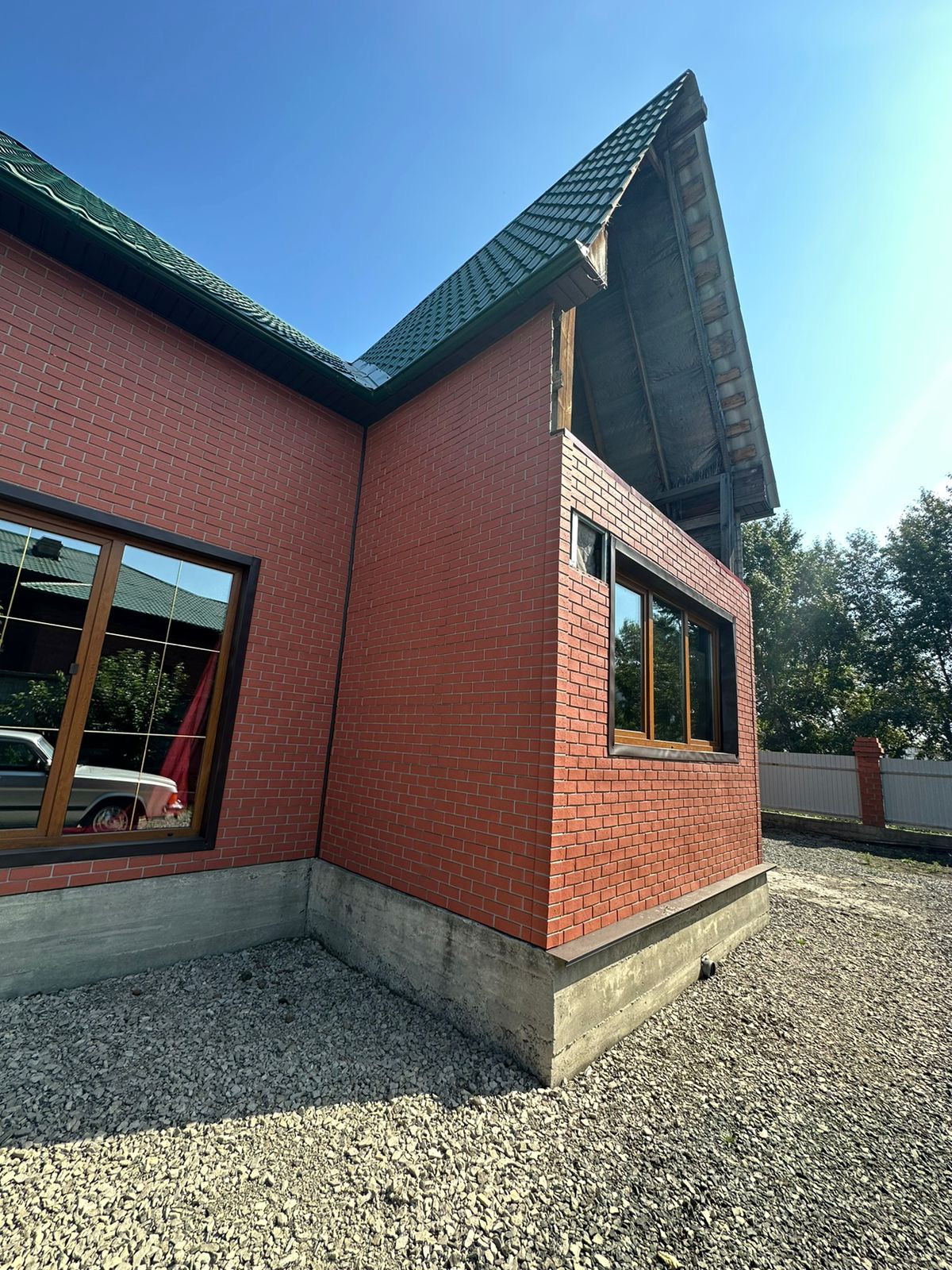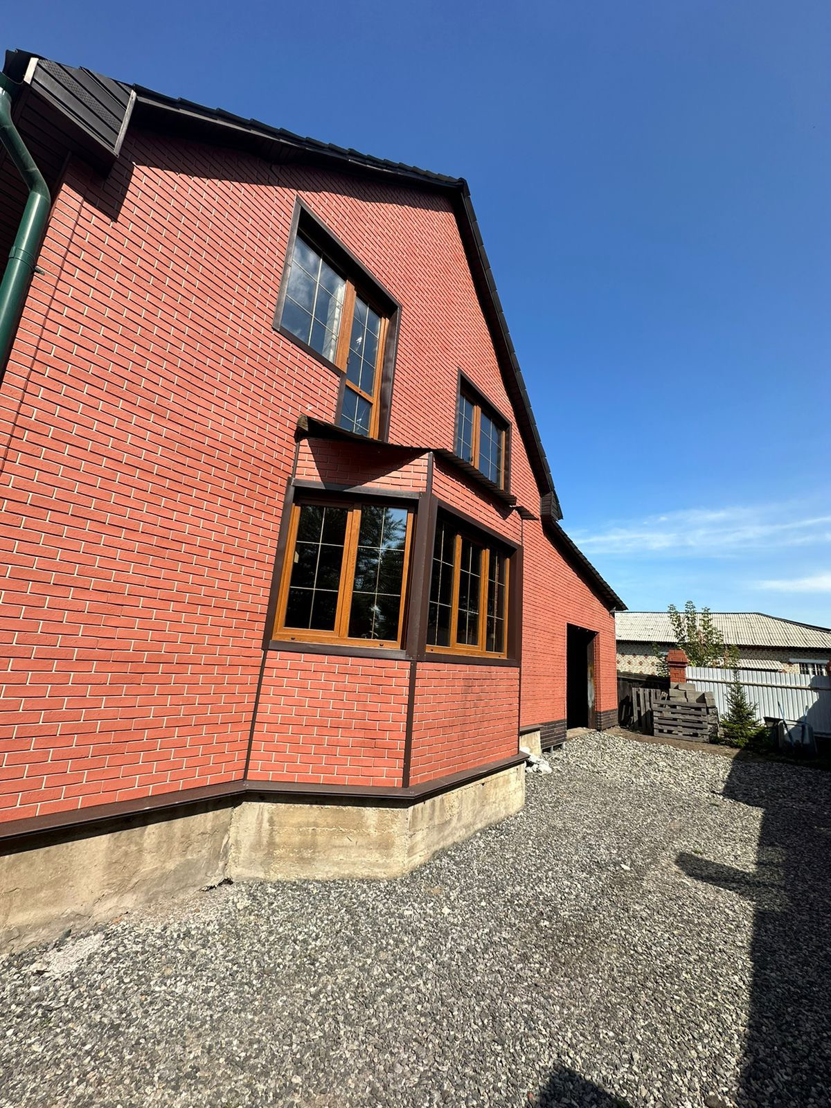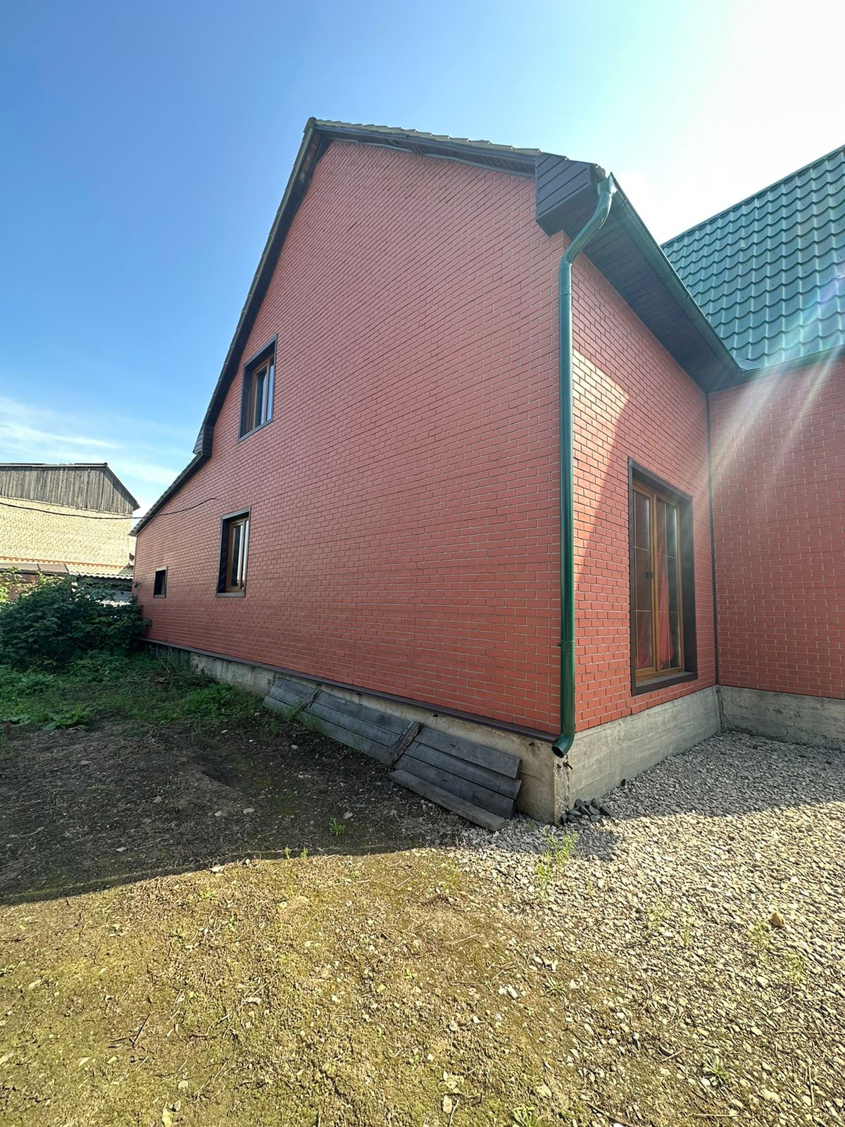 Дом сделан из бруса, утеплен и обшит немецким профилем Деке, центральное водоснабжение/отопление/канализация, имеется также отдельный домик с кухней и баней (печка + теплые полы); стайка зимняя, сарай, насаждения (ранетки, малина, смородина), теплица. Есть гараж 9*12. В доме