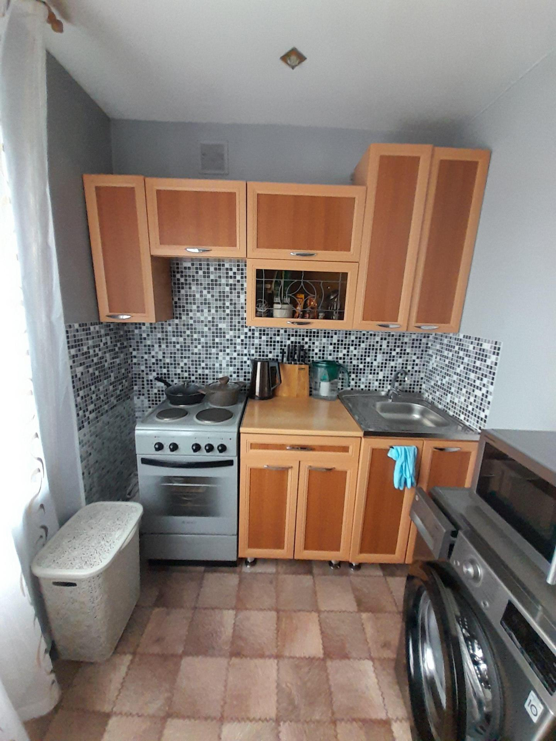 ухоженная 2хкомн.квартира,хороший ремонт окна ПВХ,жалюзи на всех окнах и на лоджии.Санузел раздельный.Есть кладовая для хранения одежды,обуви и т.п.Один собственник.Остается:кухонный гарнитур,кухонный стол,прихожая,