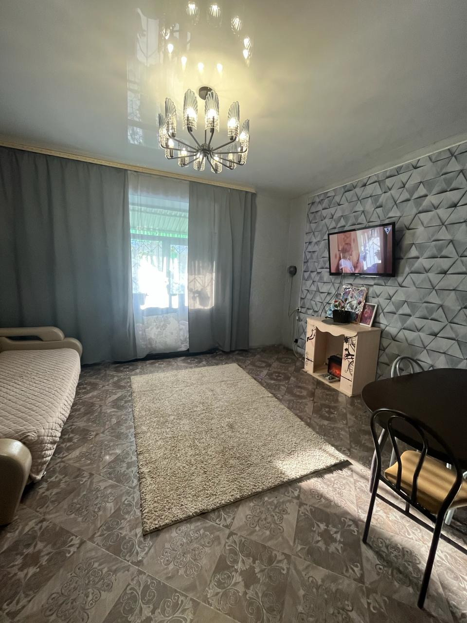 Большая кухня гостиная,просторный широкий коридор,зал и спальня хорошей квадратуры, есть небольшая гардеробная при входе в квартиру,сан.узел раздельный отделан стеновыми панелями.Окна ПВХ,е. двери, натяжные потолки по всей квартире,линолеум во всех комнатах,наклеены обои. Квартира очень светлая и теплая. Ухоженная,чистая.В шаговой доступности школа,д.сад,поликлиника,рядом остановки.