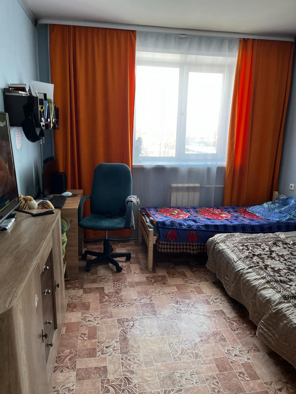Поклеены обои,постелен линолеум.