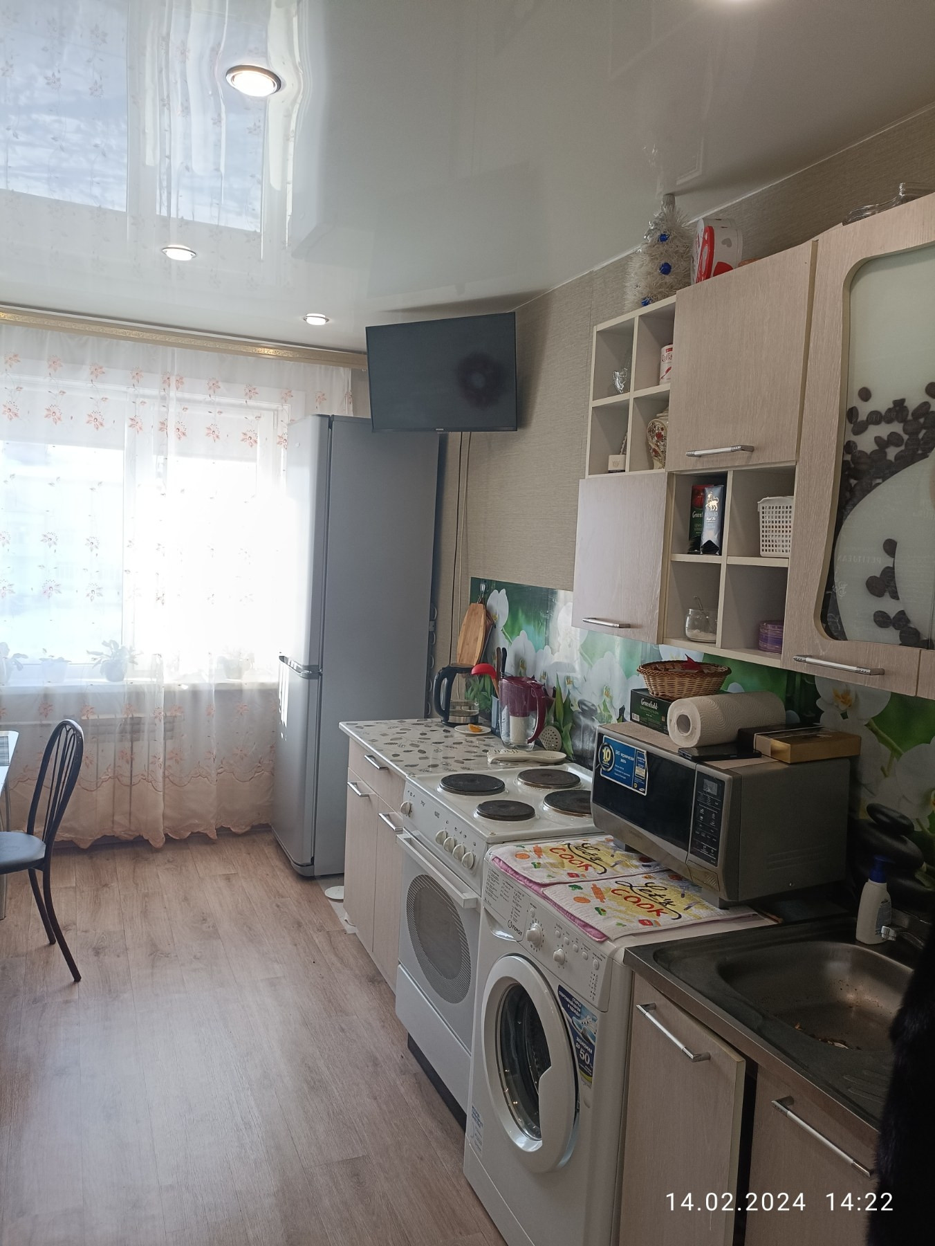 комнаты раздельные, санузел совмещён. квартира теплая, светлая, окна выходят на солнечную сторону. Во всех комнатах натяжные потолки, межкомнатные двери, линолеум, в ванной - кафель. Остаётся вся мебель и бытовая техника. Квартира готова для проживания: заезжай и живи! В шаговой доступности вся инфраструктура города: школа, лицей, детский сад, ясли, администрация и др. У квартиры один собственник, прописанных нет.