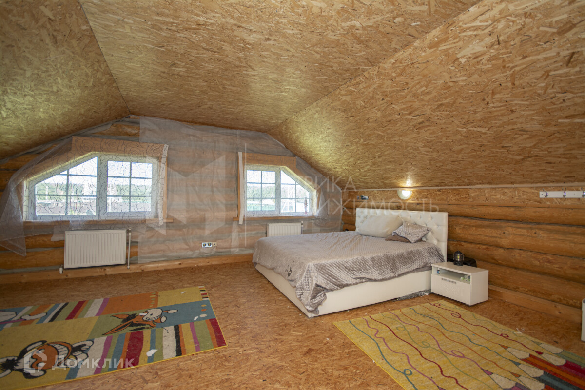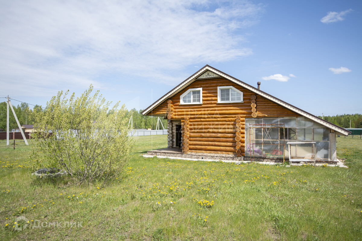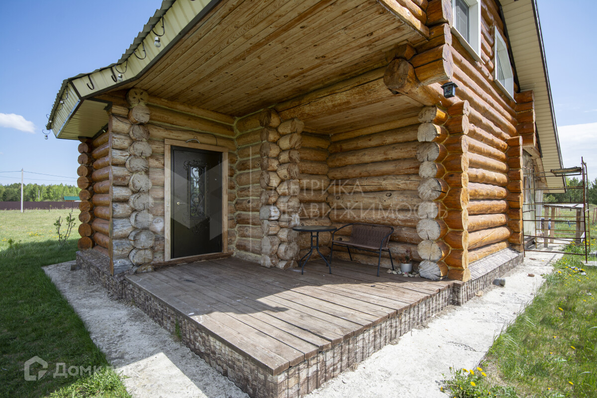 Дом выполнен на 100 % из цельного бревна, размер бревна ф35-42, собранный на ленточном фундаменте, с буро-наливными сваями глубиной 2,70 метра. Дом в два этажа. Второй этаж мансардного типа, в качестве утеплителя использовали Эко Вату методом надува, в 20-25 см.