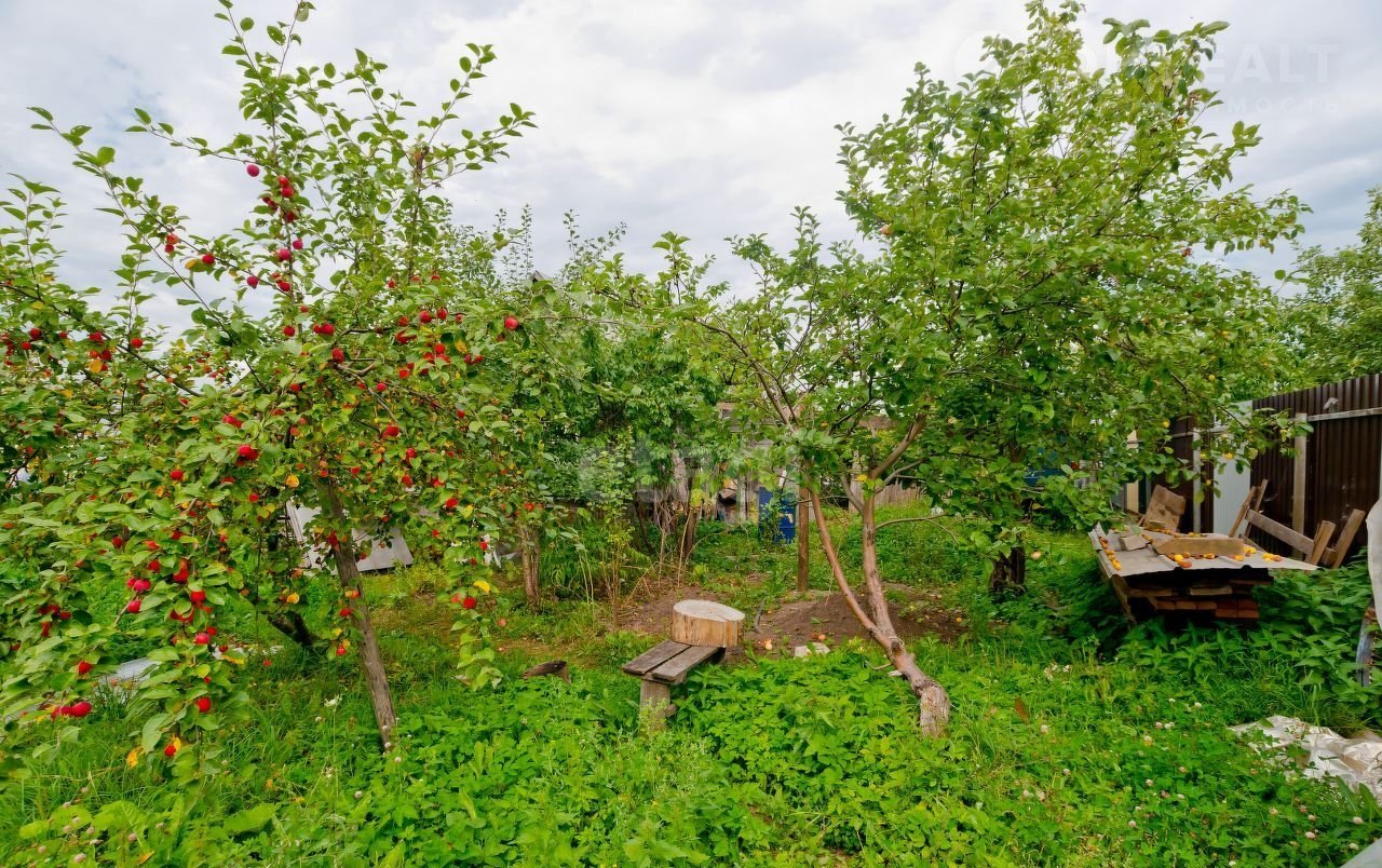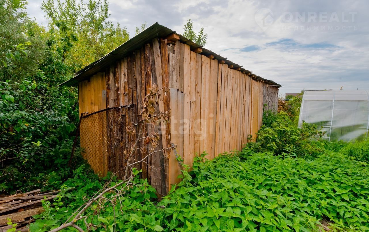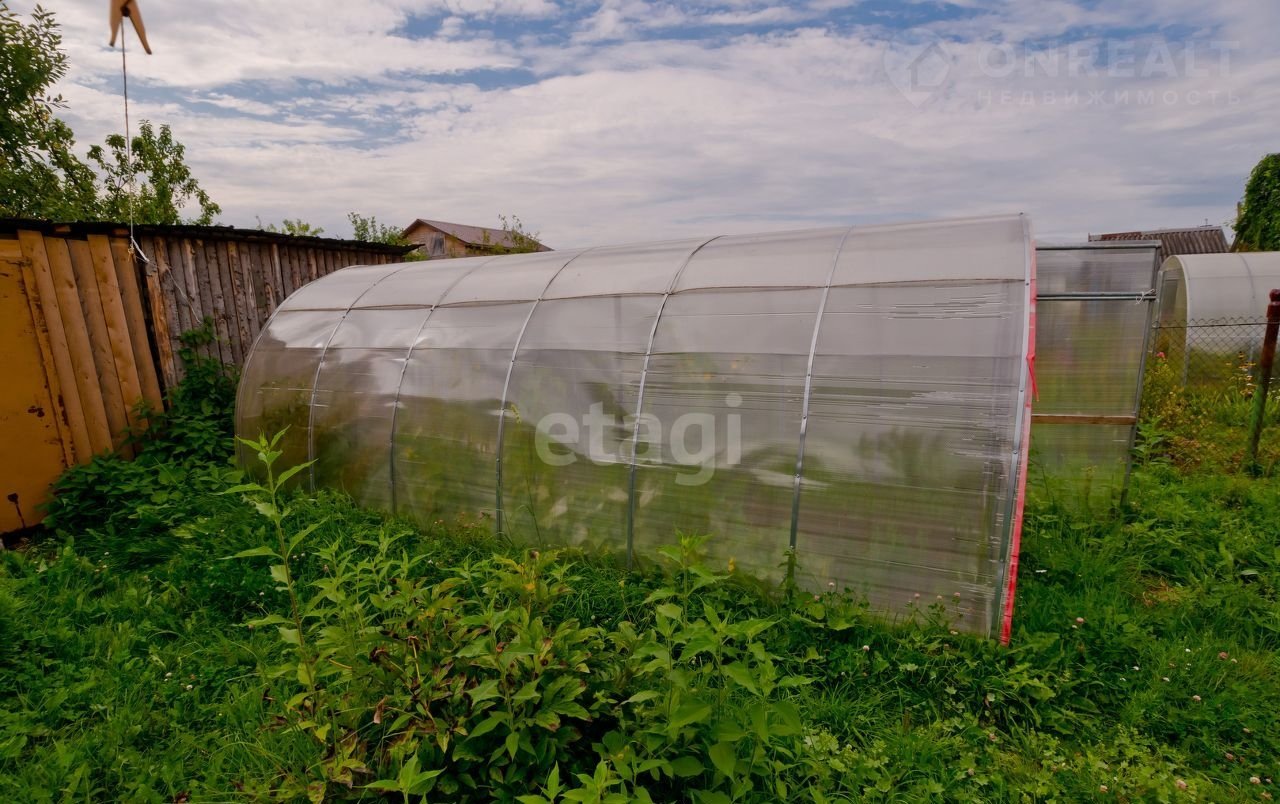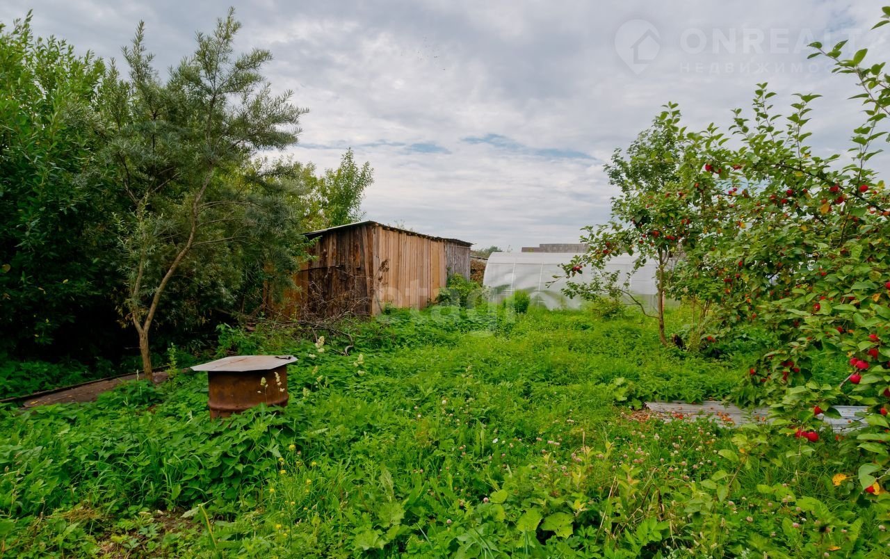 На участке много плодово-ягодных деревьев и кустарников, теплица и хозпостройки, организовано место для стоянки автомобиля.