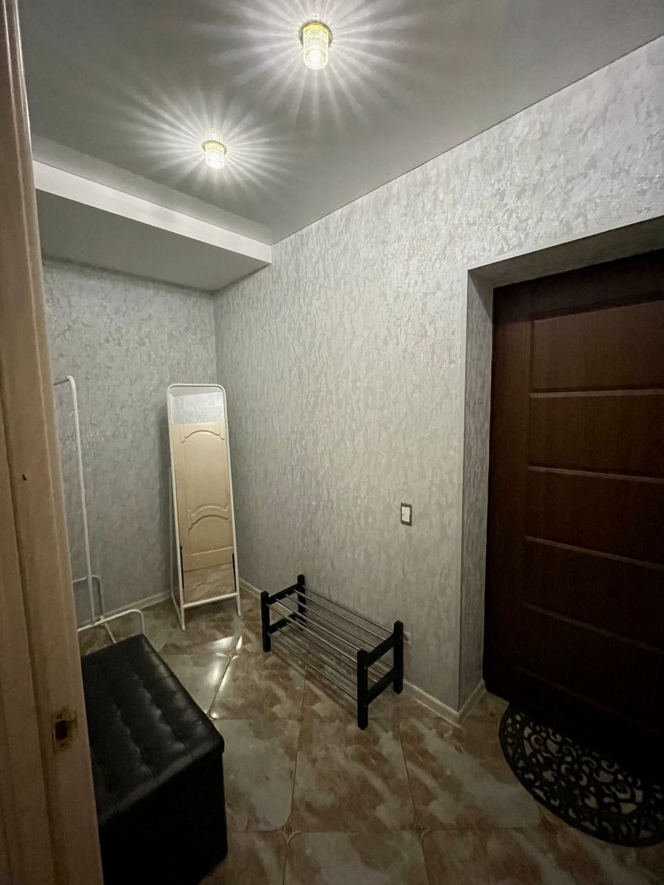 До автобусной остановки, пешком 5-7 минут. Детские сады, школы, продуктовые магазины, аптеки, тоже рядом.