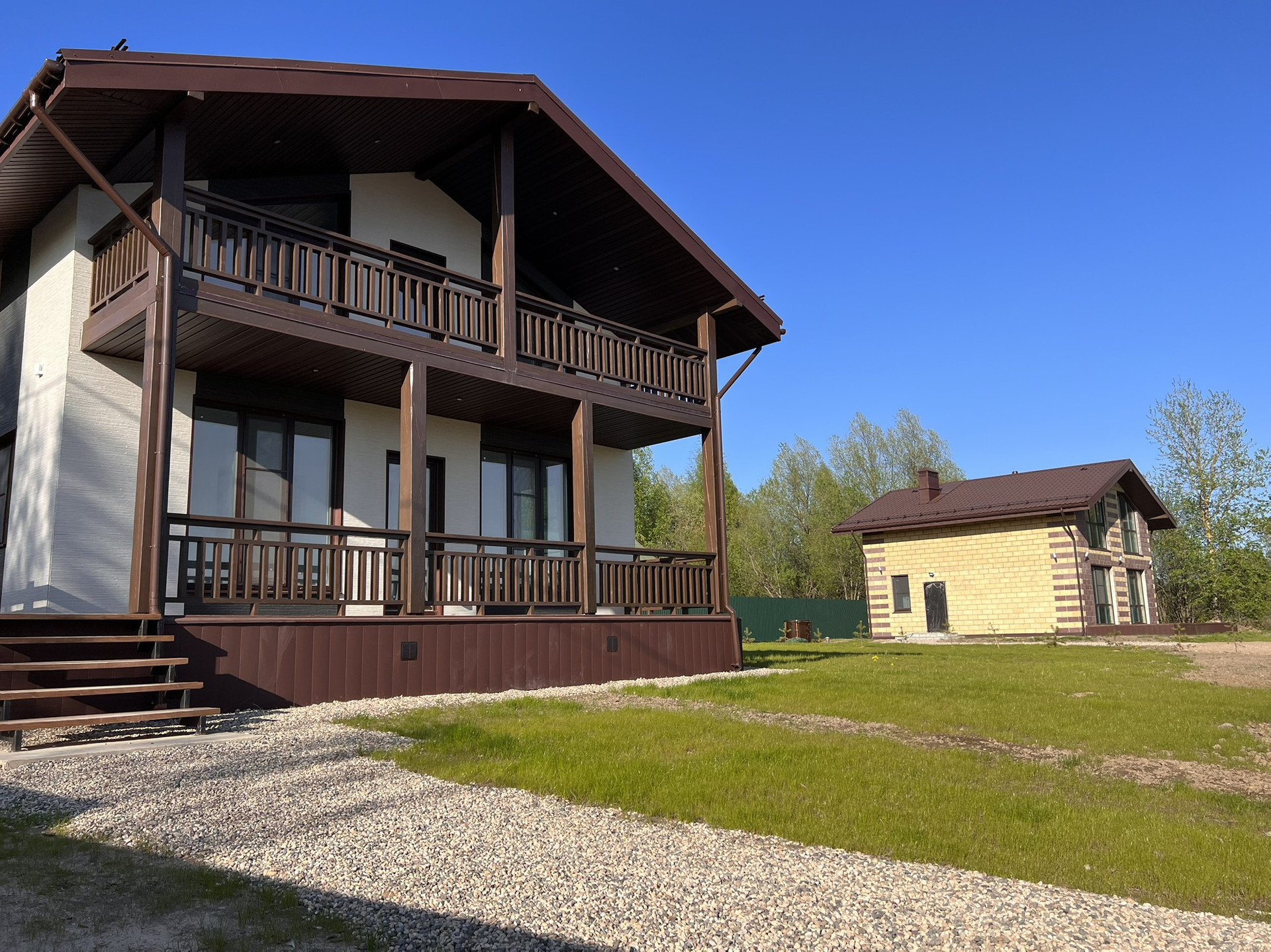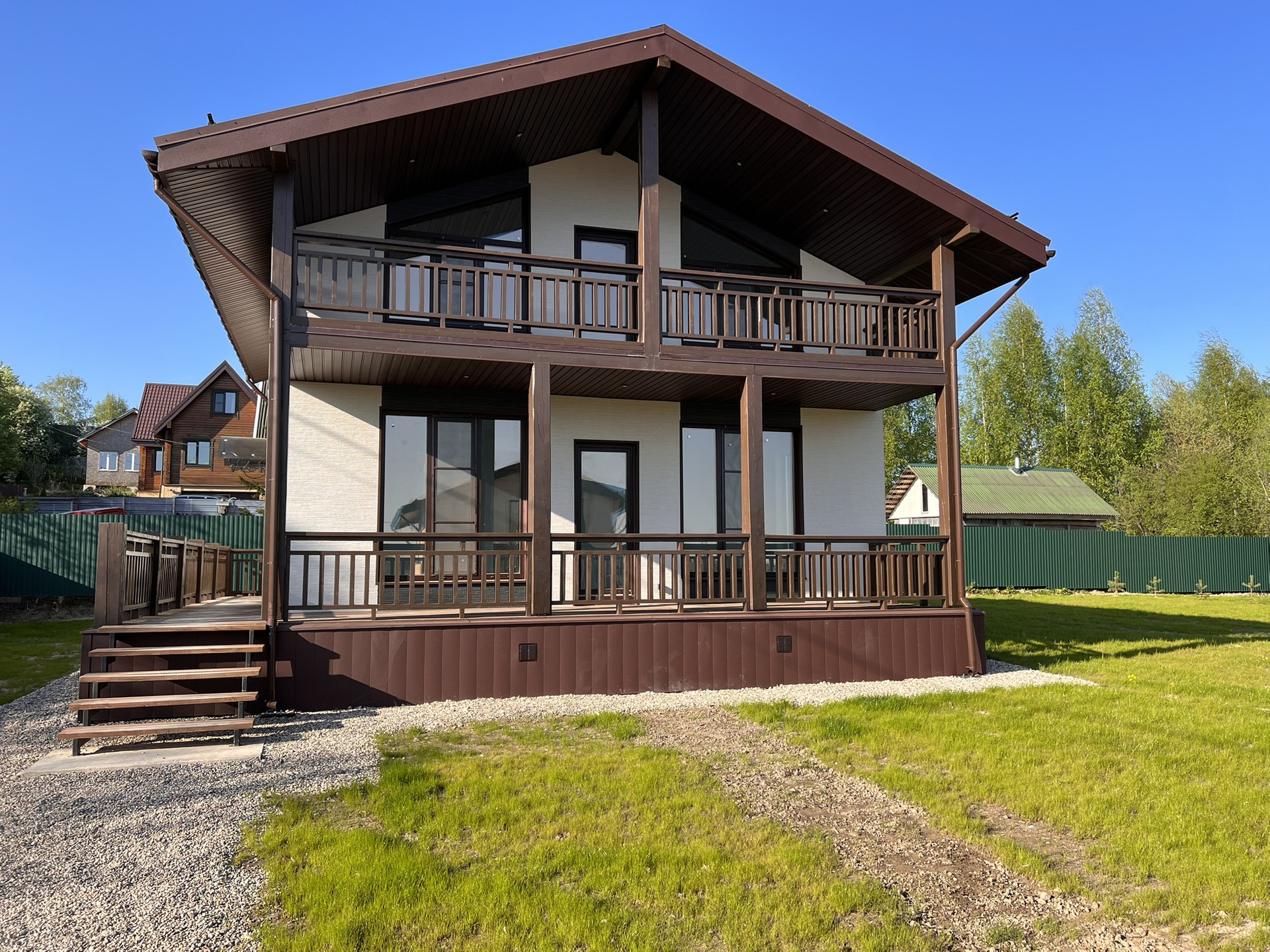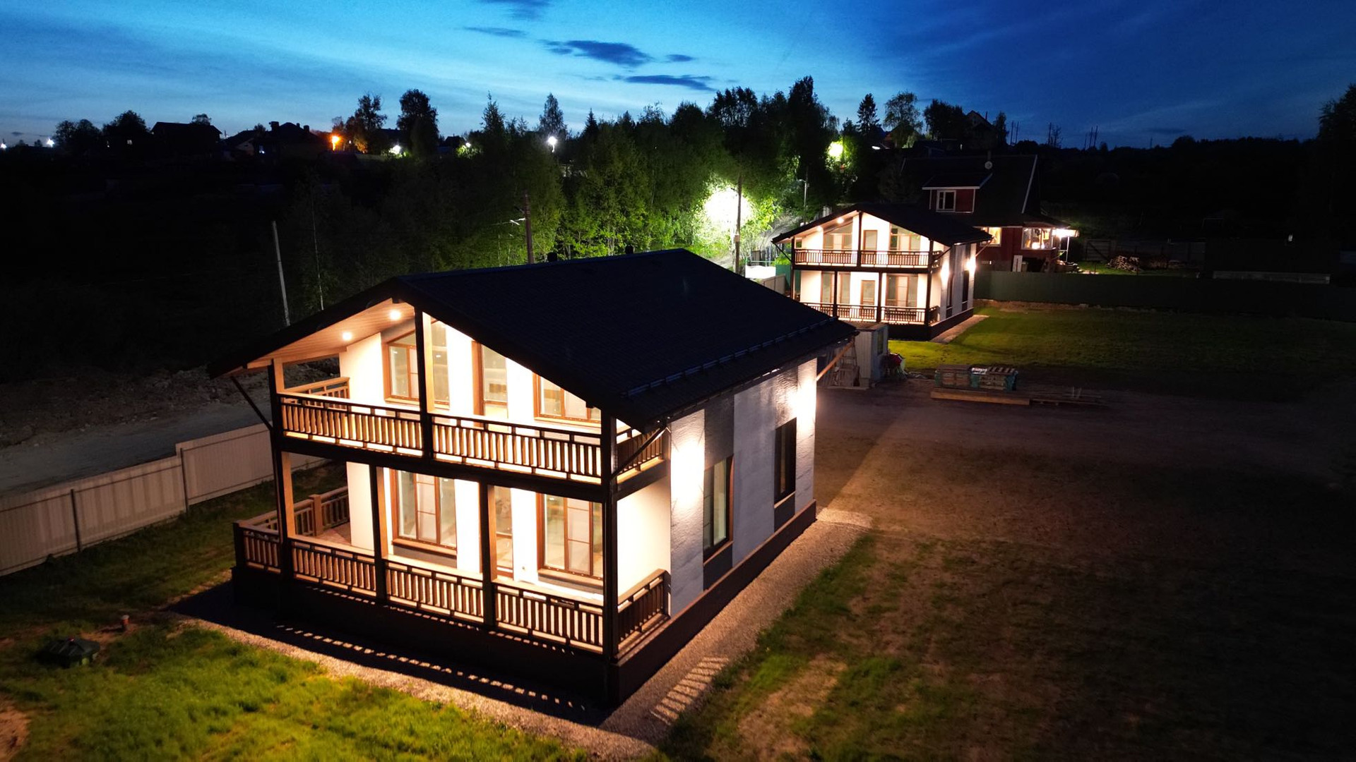 Дома в 2-х этажном исполнении выстроенны таким образом что не смотрят друг на друга не закрывая обзор.